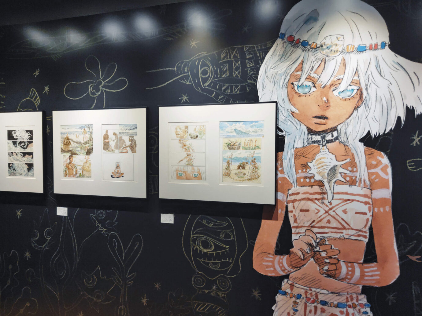 九月看到台灣漫畫基地的展覽《蜉蝣之島》時,就深受畫作吸引,也是因原稿展而納入看展名單之中,但這時候還不認識創作者,也不了解《蜉蝣之島》所述說的故事,看展也是先以繪畫的角度來觀看,像是原稿上的筆觸、塗改的痕跡、草稿與終稿的比較等等。