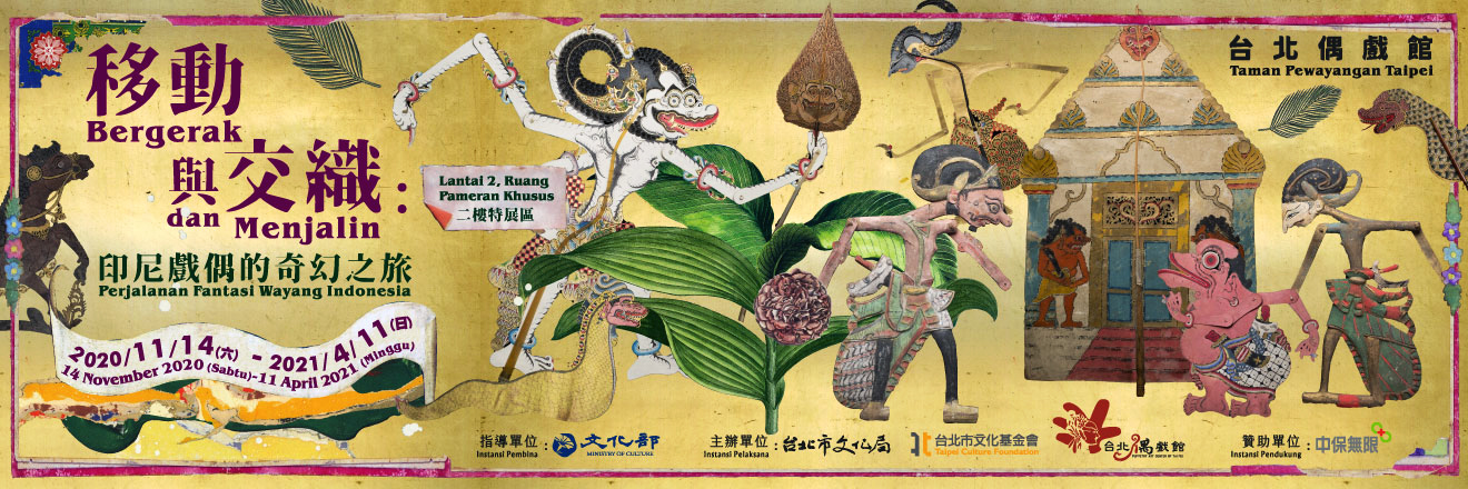 「移動與交織:印尼戲偶的奇幻之旅」以台北偶戲館典藏的印尼皮影戲偶(Wayang Kulit)和扁平傀儡偶(Wayang Klitik)為主軸,透過戲偶、影像、文件、創作,交織追述戲偶們的時空前緣與移動路徑,帶領你我一同經歷印尼戲偶的奇幻之旅。
