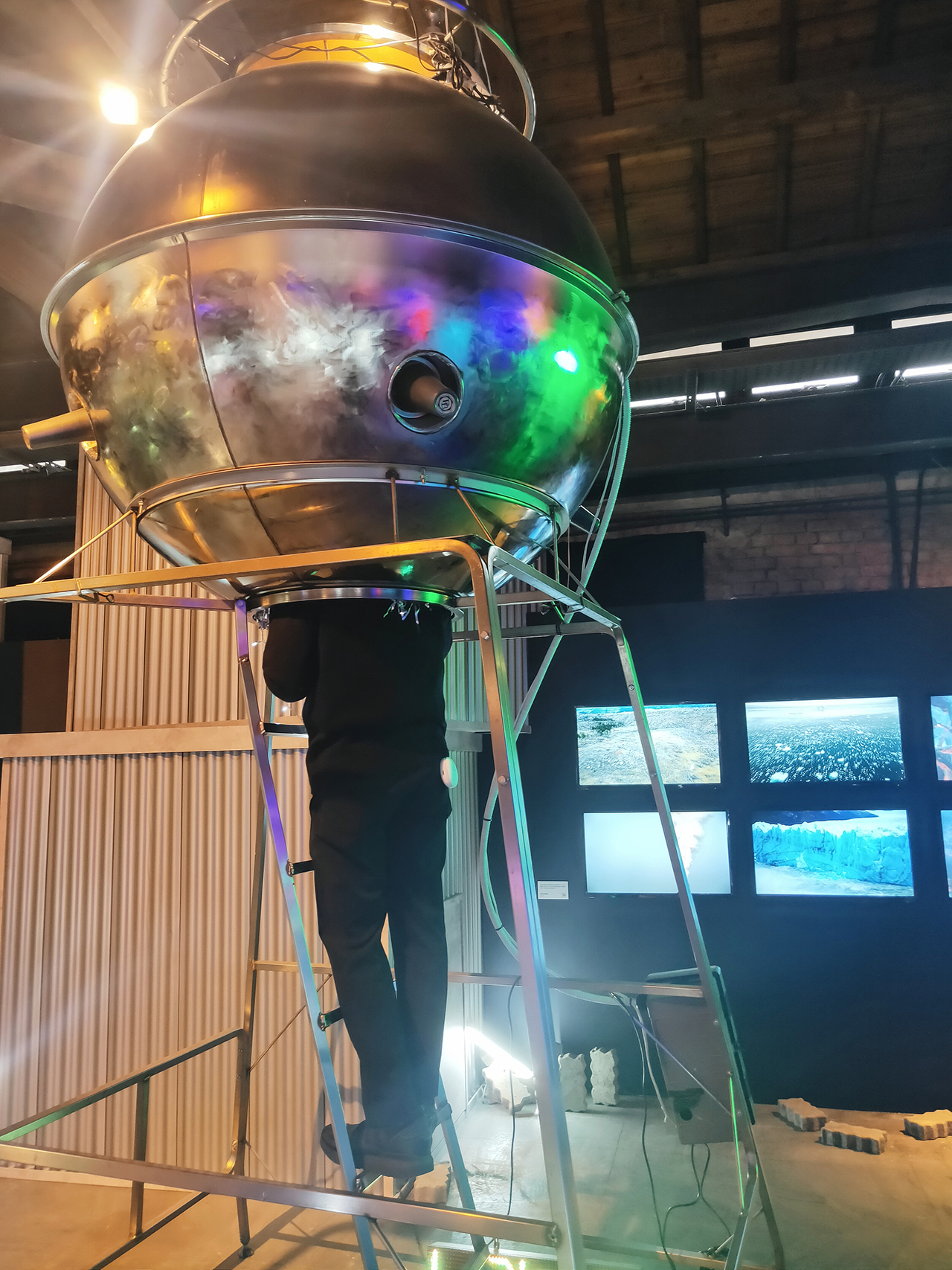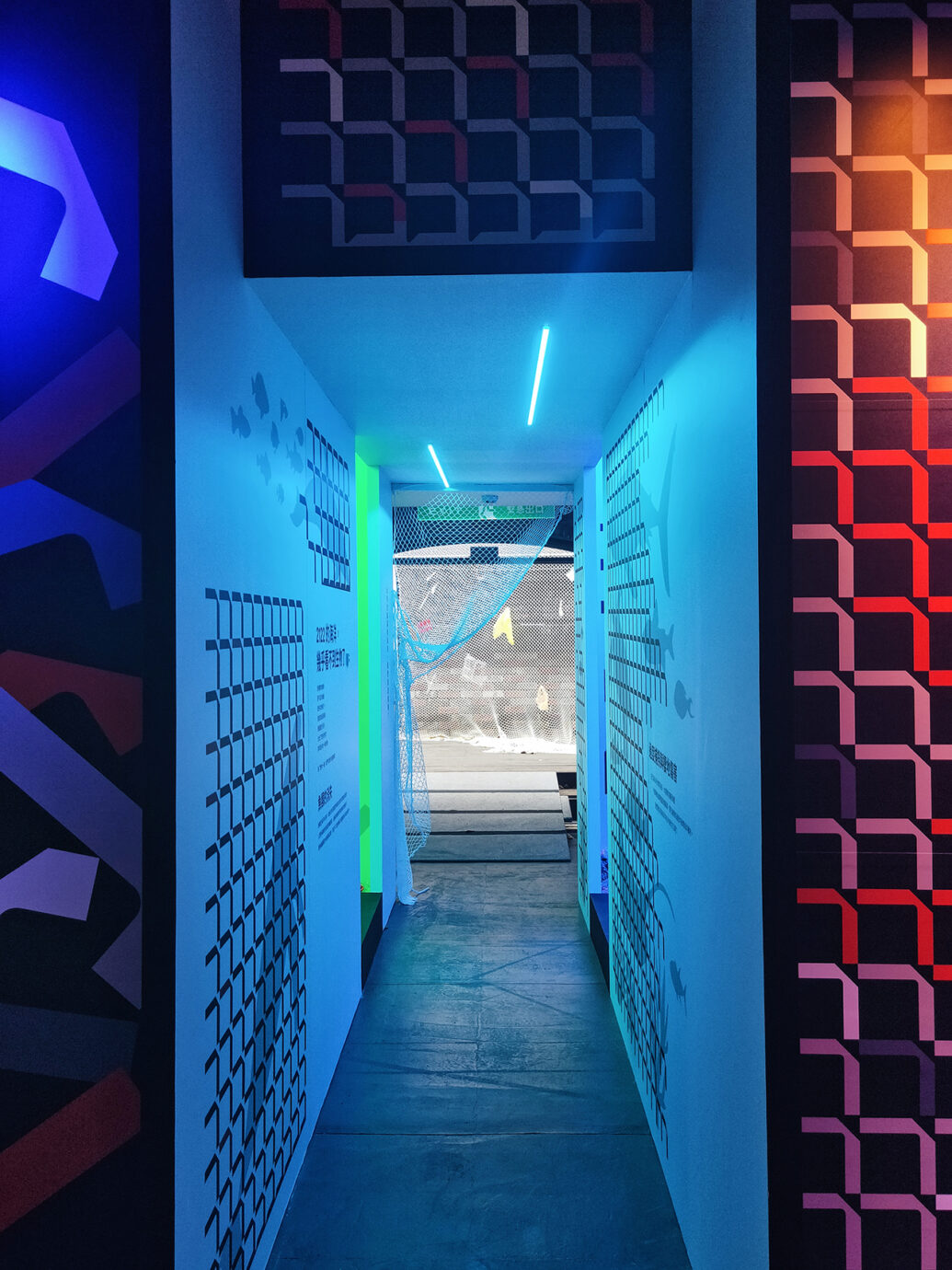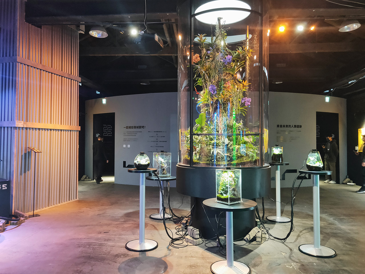 展覽的概念與體驗都很輕量,其中讓我覺得比較有趣的就是在展場裡「捕捉機械獸」的互動!在2222年的場景空間裡,觀眾可以透過手機捕捉屬於世界污染源的機械獸!(另類抓寶!)