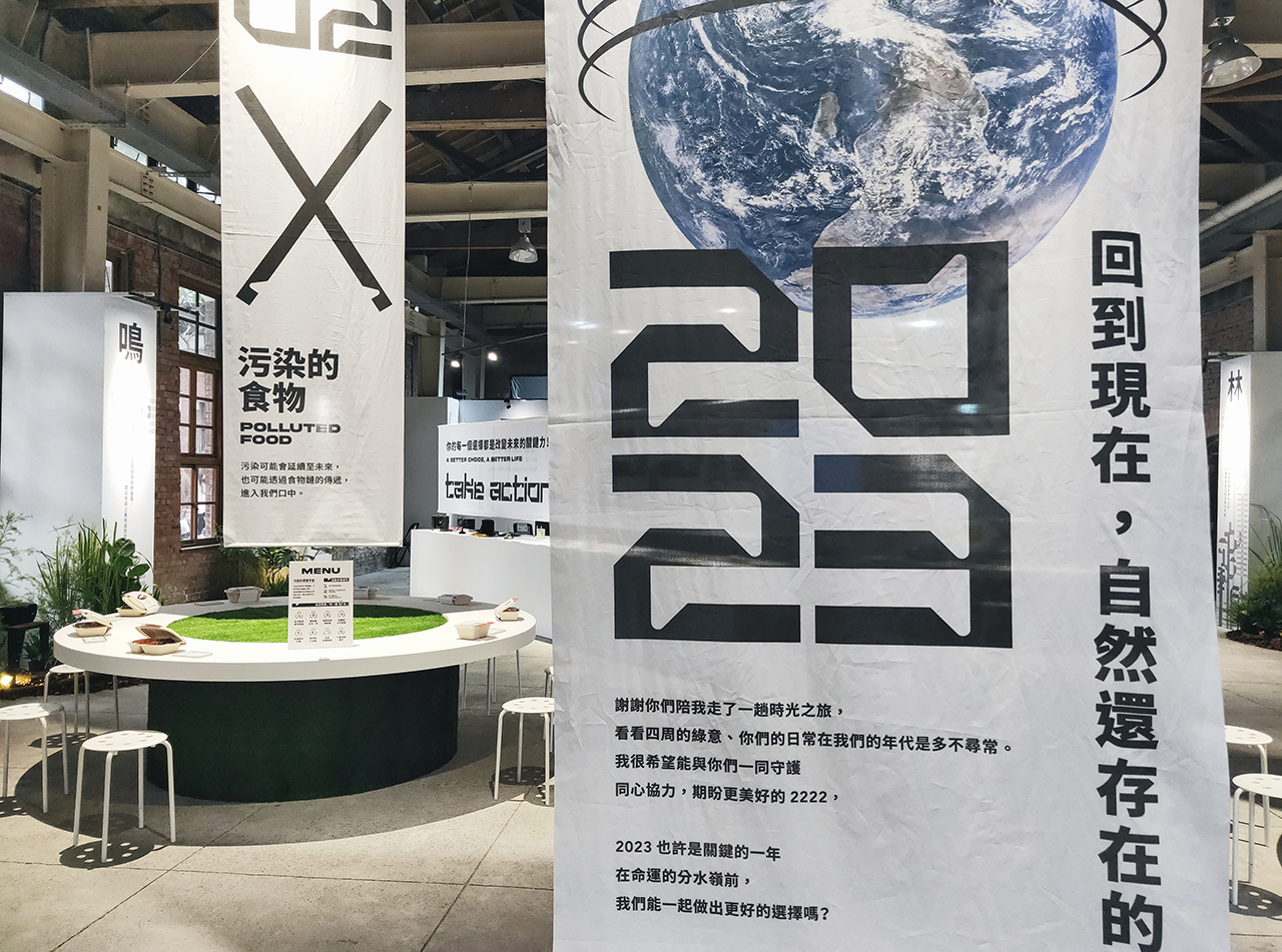 《2222-未來選擇地》是一場以未來與永續為概念的輕量互動展,展覽以200年後的未來場景為開場,想像因環境惡化而失去了自然與生機的世界,僅在未來的方艙中保留了唯一的淨土。隨著場景的改變,觀眾也會回到現今2023年,透過展場的互動設計來回望每一次對於永續生活的選擇!