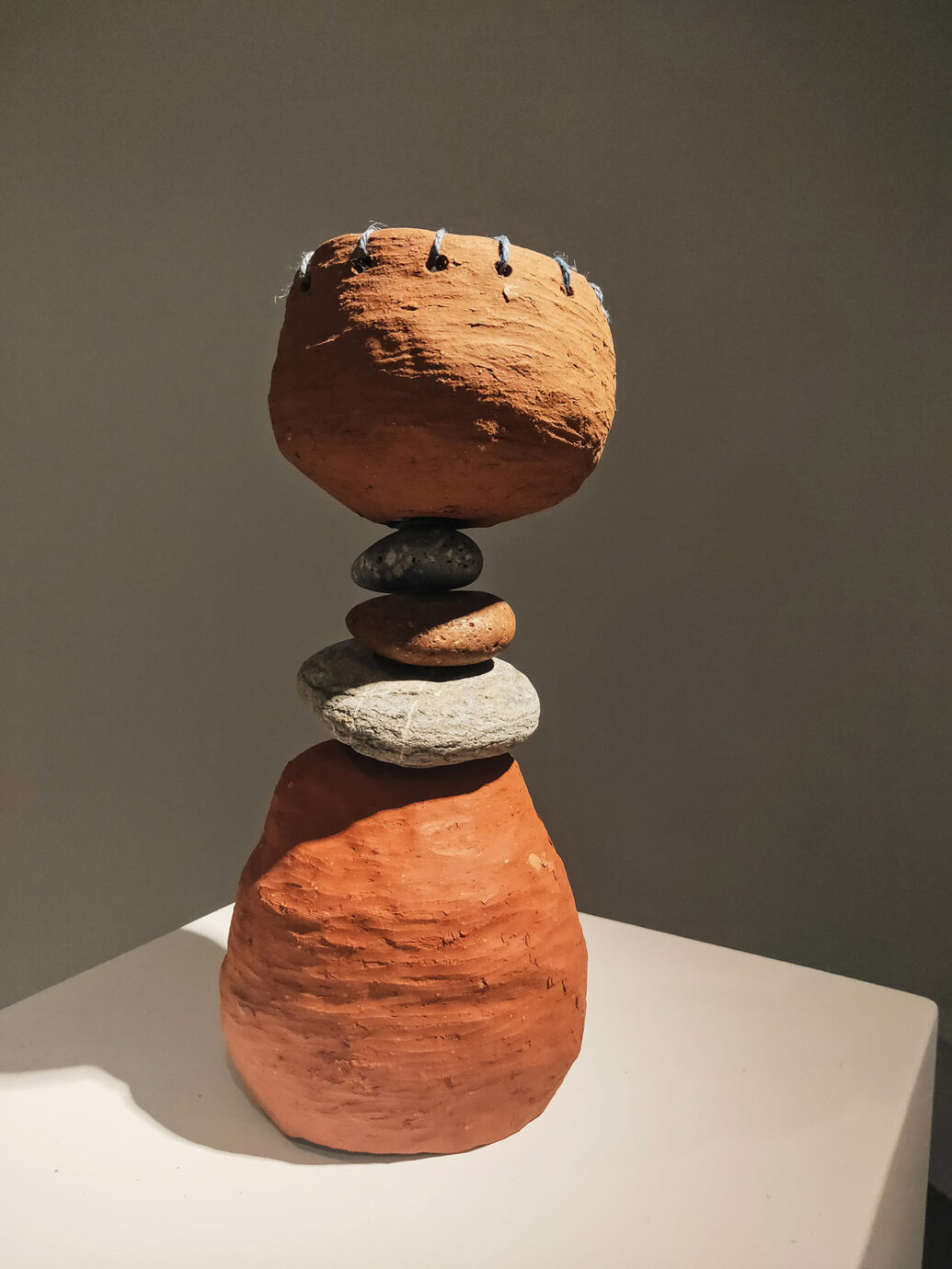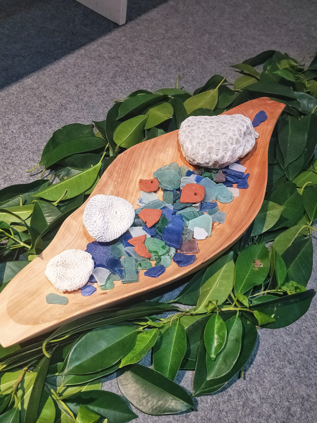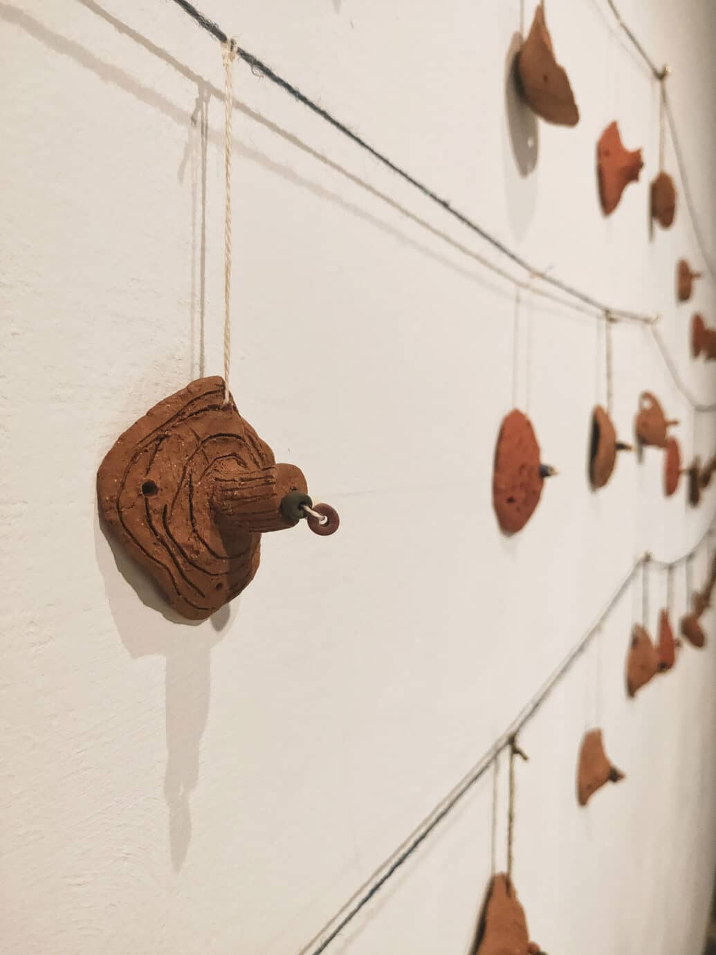 土地的故事總與自然相伴,在展場裡,藝術家們的作品與表達也多取之於自然,取之山林的植物虎尾蘭、取之海的漁網以及取之土壤的陶作,取自山海的作品,似乎也像是另一種藝術家對於土地的呢喃。