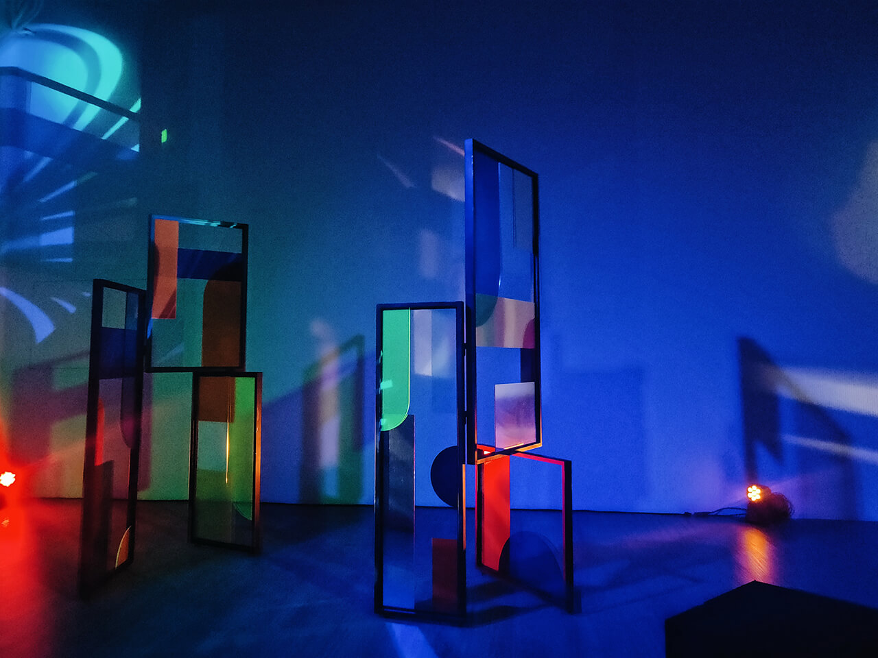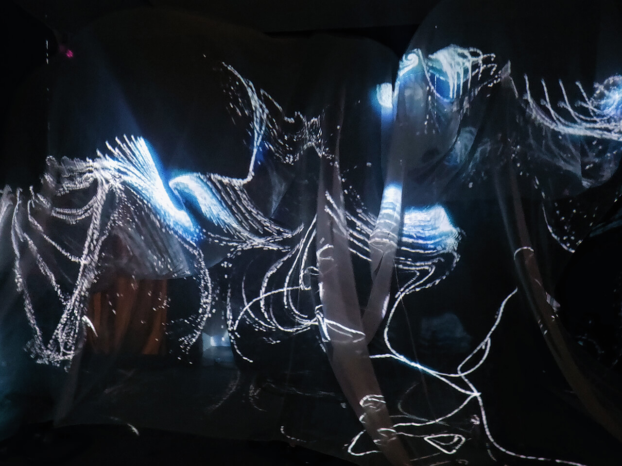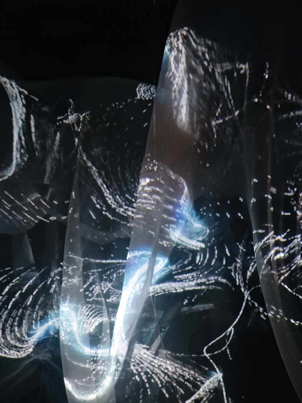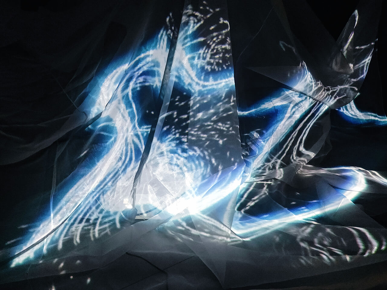 隨著現場觀眾的移動而改變流向的裝置作品《風之形》、似沉浸式劇場般的作品《廊道的迴響等》,透過裝置、聲音與燈光,呈現更具有表演性的觀展體驗。