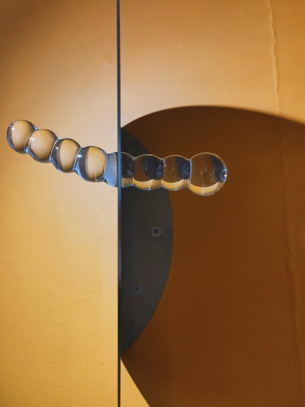 現場分享比較有趣的是,原來透明的情趣用品並非藝術家特別訂製的,而是直接買現成物,藝術家也分享透明精緻的模樣也像是另一種類雕塑,這一點也是滿有趣的想像呢!