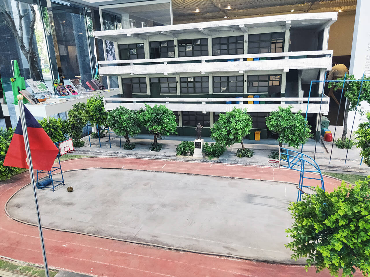 2018野根莖雙年展時就曾看過這件作品,雙年展除了有展示錄像動畫外,還展示了藝術家費時7年打造的模型街景,大型的台灣街景模型,現場看也特別令人印象深刻,而這次忠泰美術館一樓也有展示錄像動畫中的學校佈景!