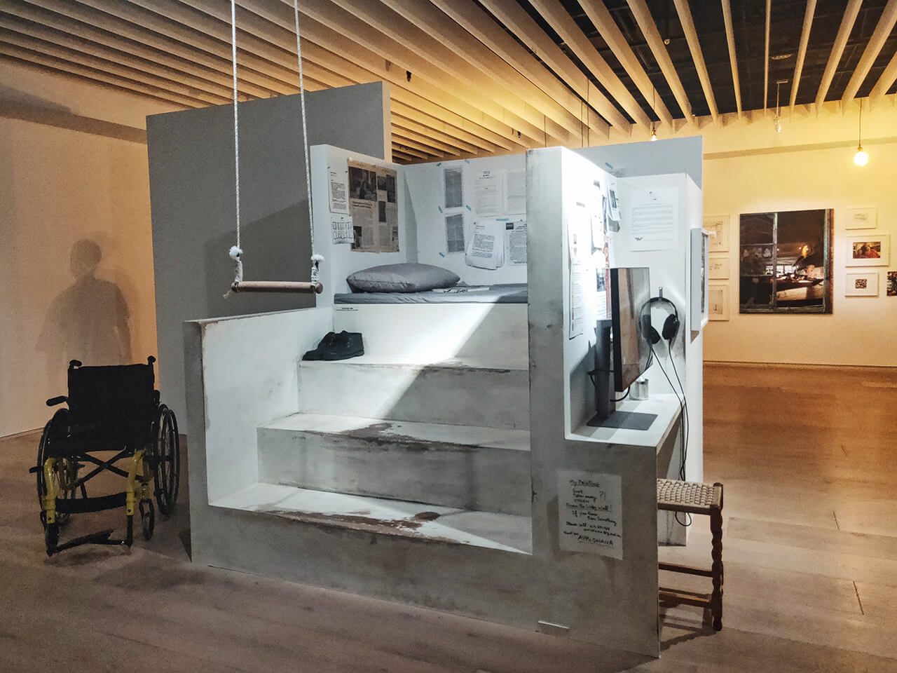其他也很有趣的作品,有日本藝術家豬古亞希訂製的透明寄居蟹殼,每一個蟹殼上都有小型的城市,另外國外的藝術公寓「魏斯貝斯公寓」的再現與紀錄也很有趣,想了解這個公寓的故事,建議可以聽美術館現場人員的解說,也可以親自去躺看看公寓再現版的藝術家床鋪!