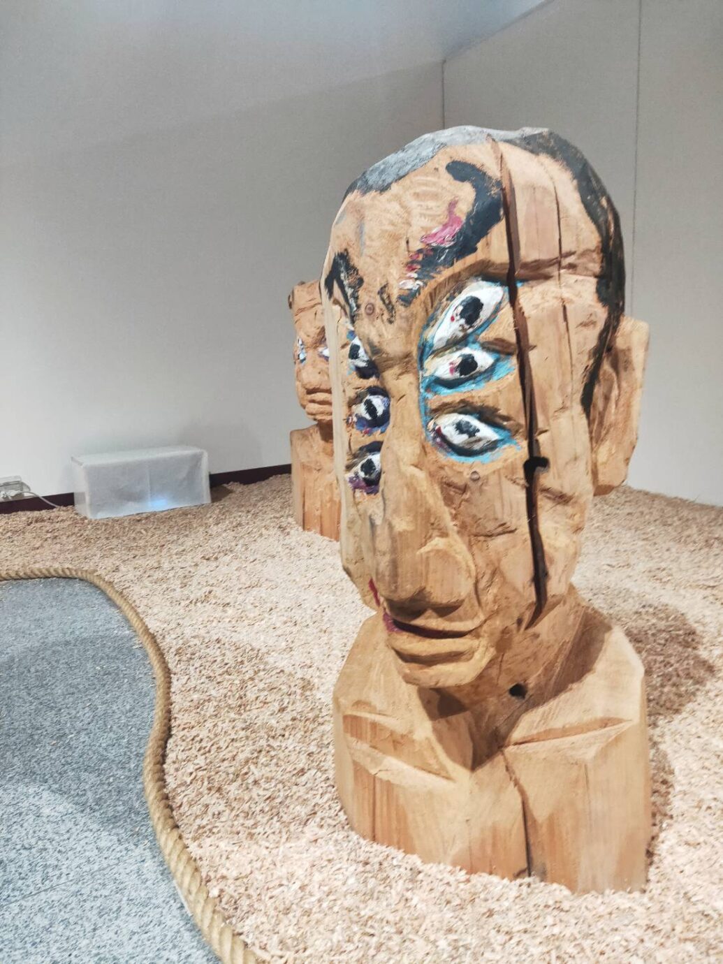 了解陳武鎮是政治犯的身份後,更引我好奇展覽會如何表現作品與發聲,扭曲的臉孔、猙獰的雕塑,現場被作品圍繞時,都會感受到一種非常壓抑的情緒。