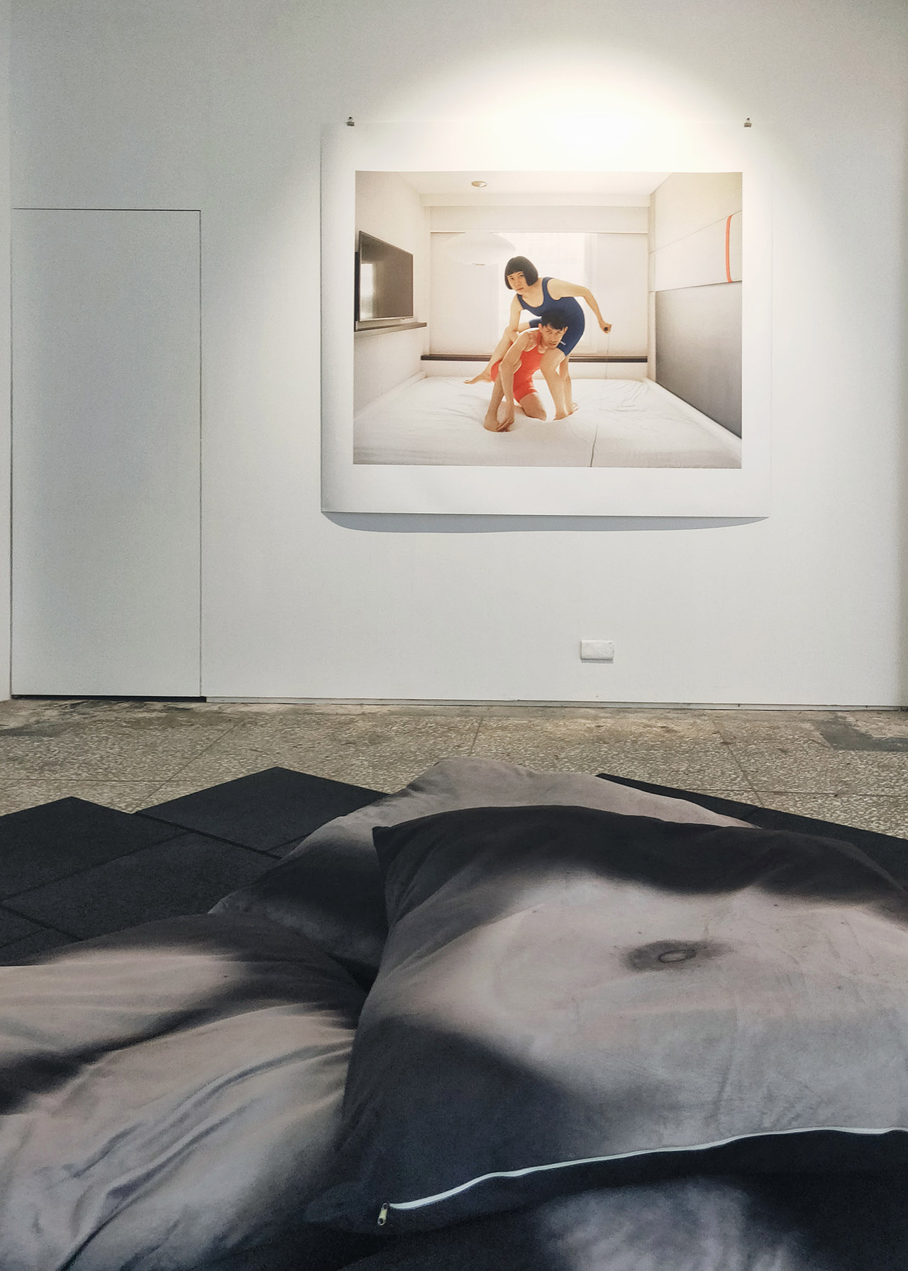 而另一件作品則是販賣身體一部分的錄像《賤賣品》,藝術家選了4個身體部位,並讓人逐價競拍,最終價高者可以獲得各部位的翻印照片,整個競拍過程對話也成為錄像作品,而觀眾也可以在展場的地板上看到各身體部位的抱枕(也可以坐在上面喔!)