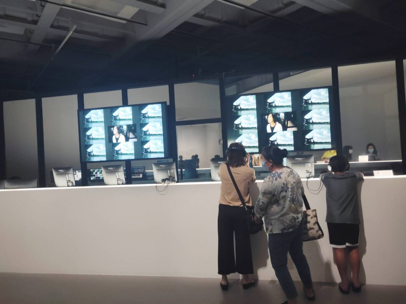展場櫃台的後方有各個房間的影片,一般觀眾可以直接看到現場畫面及聲音,觀眾也可以直接到房間旁看參與者的活動,所以算是很赤裸地被呈現在他人的視線之下。(房間內也可以看見房外的觀眾)