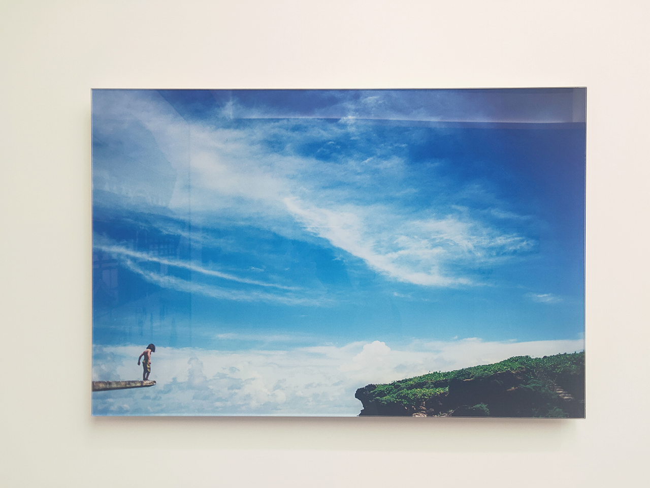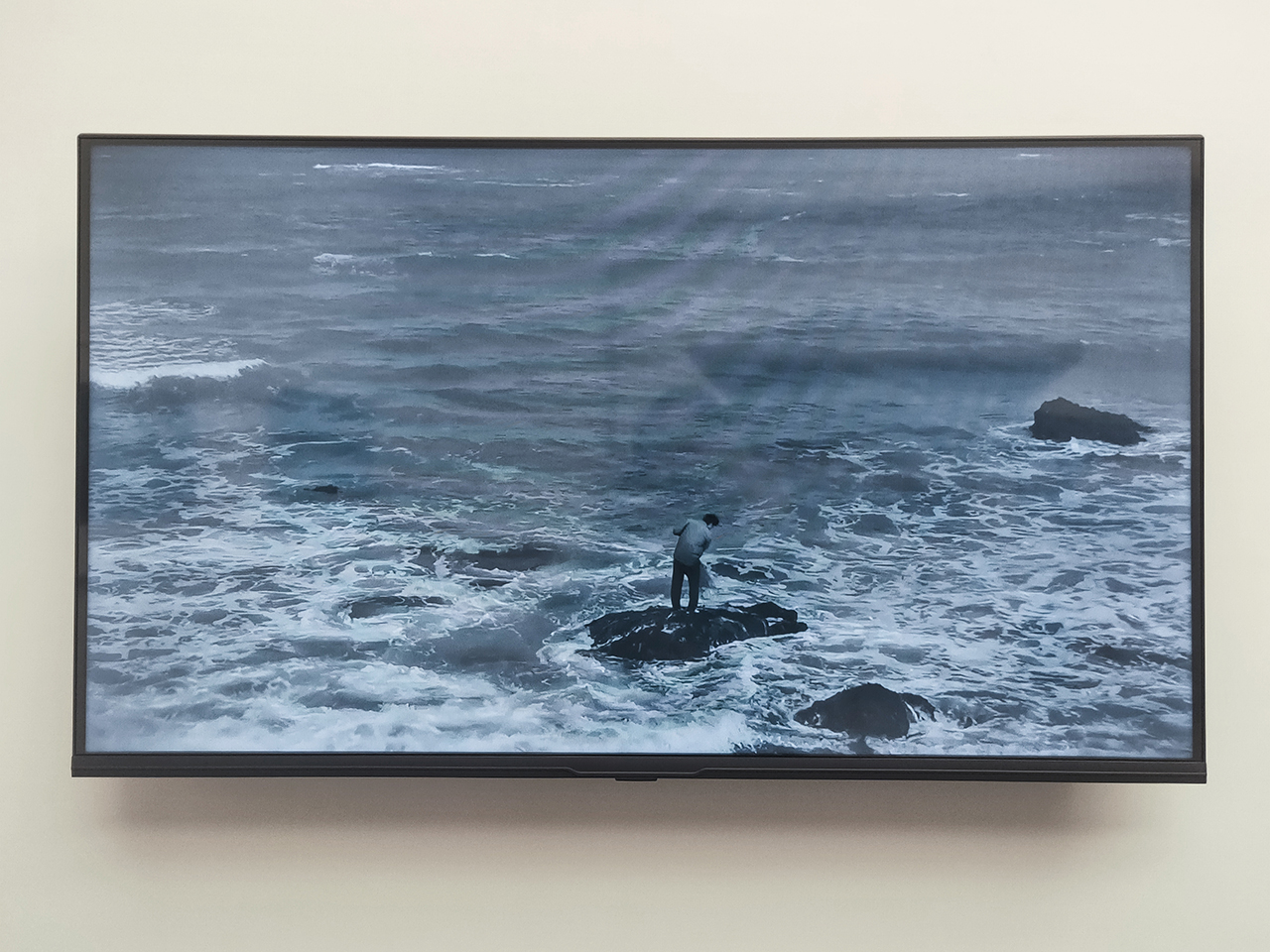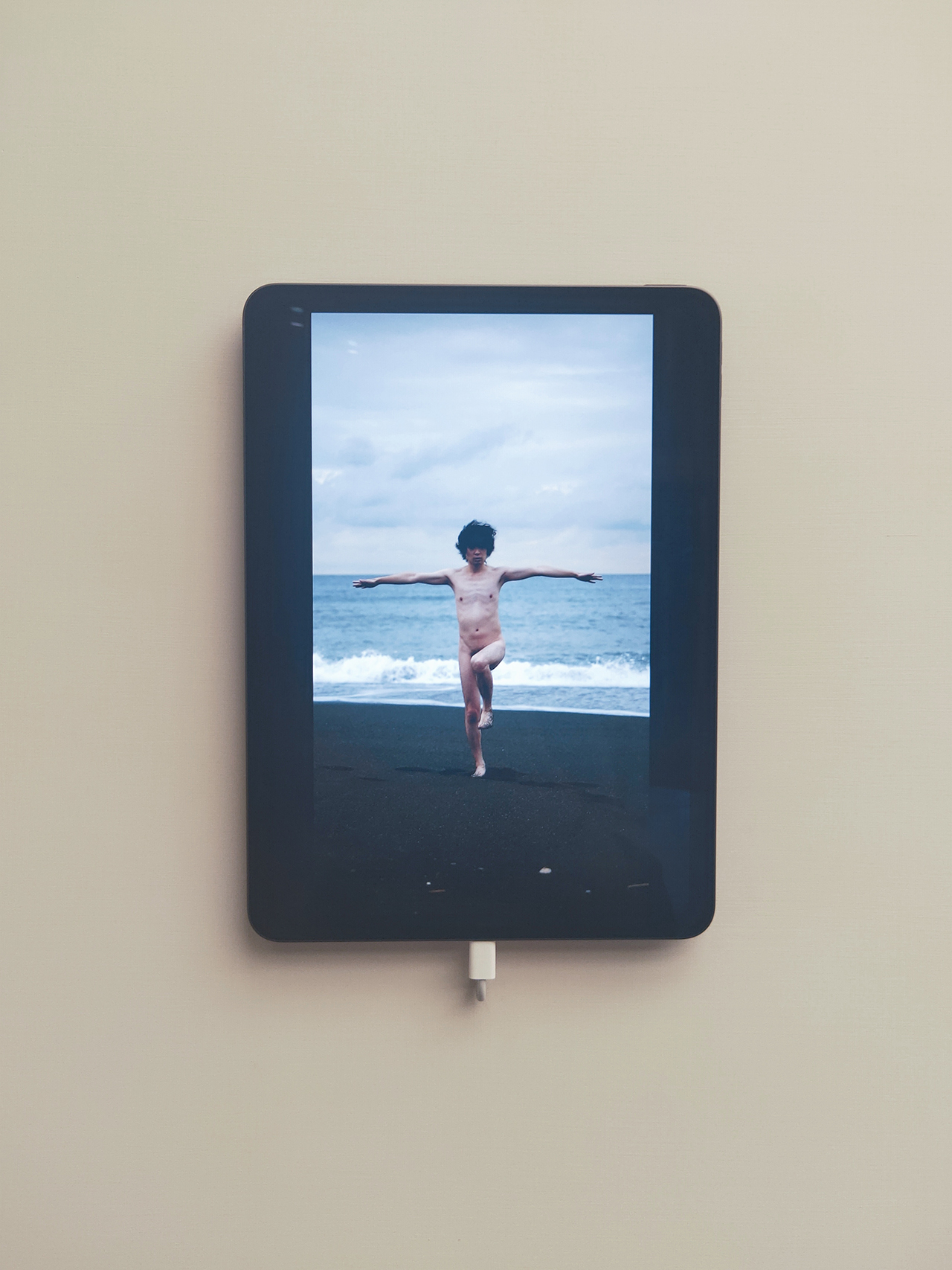其中《水平線の測量》也讓我聯想到現正於北美館《在夾縫中行走》展出的另一件錄像作品,在《在夾縫中行走》中的錄像,藝術家是以雙腳踩踏海平線,而《水平線の測量》藝術家則是以雙手試圖平行於海平線。
