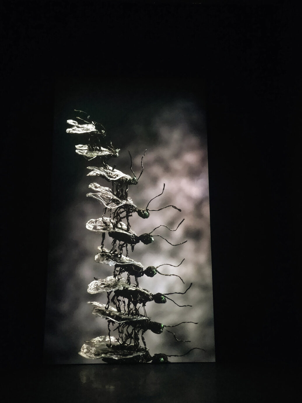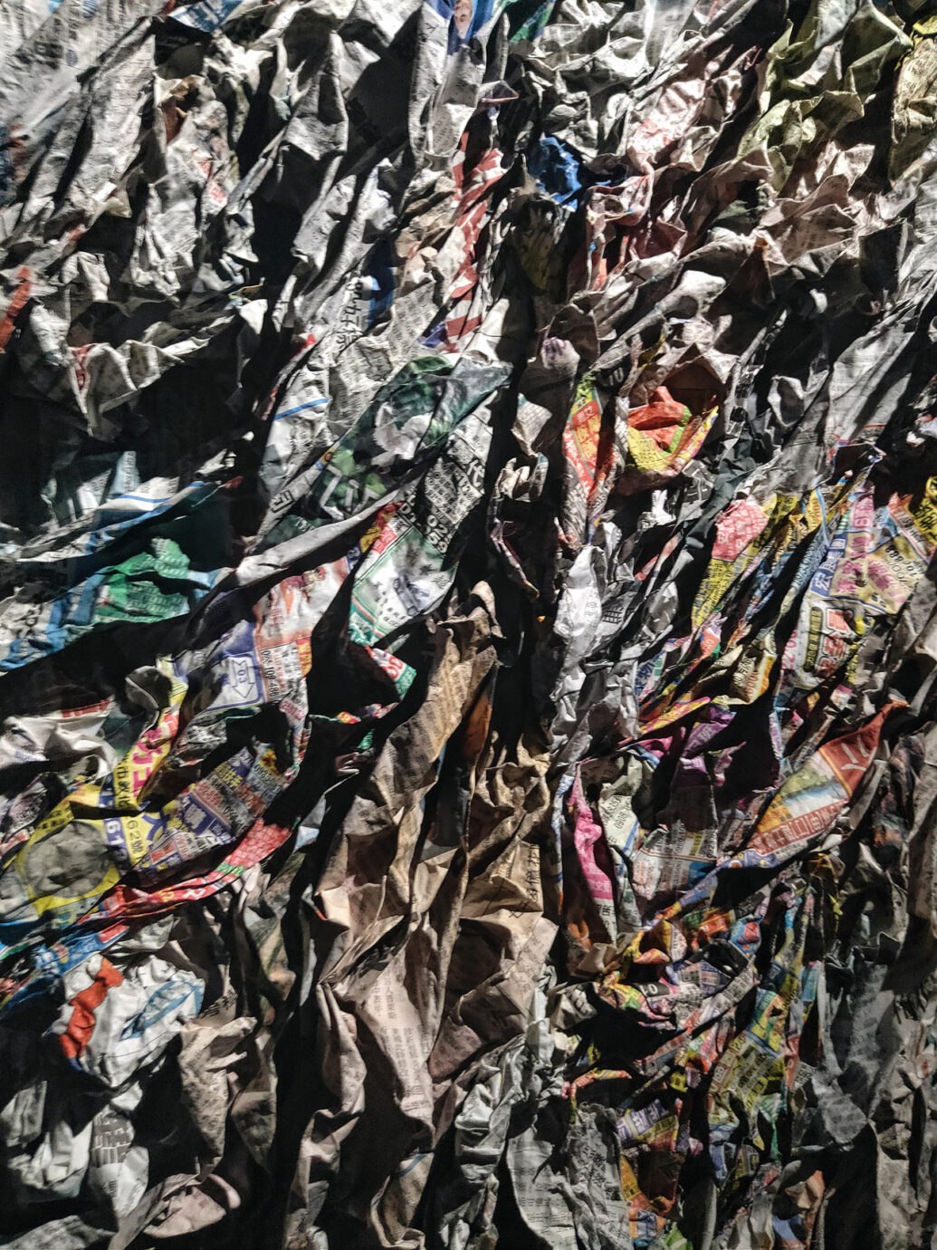 報紙圍繞的空間、音響上的動物、展場入口的碎片等,如同展名中的「複眼」,展場提煉了故事情節並延展感官,以更多細膩幽微的角度來呈現故事。