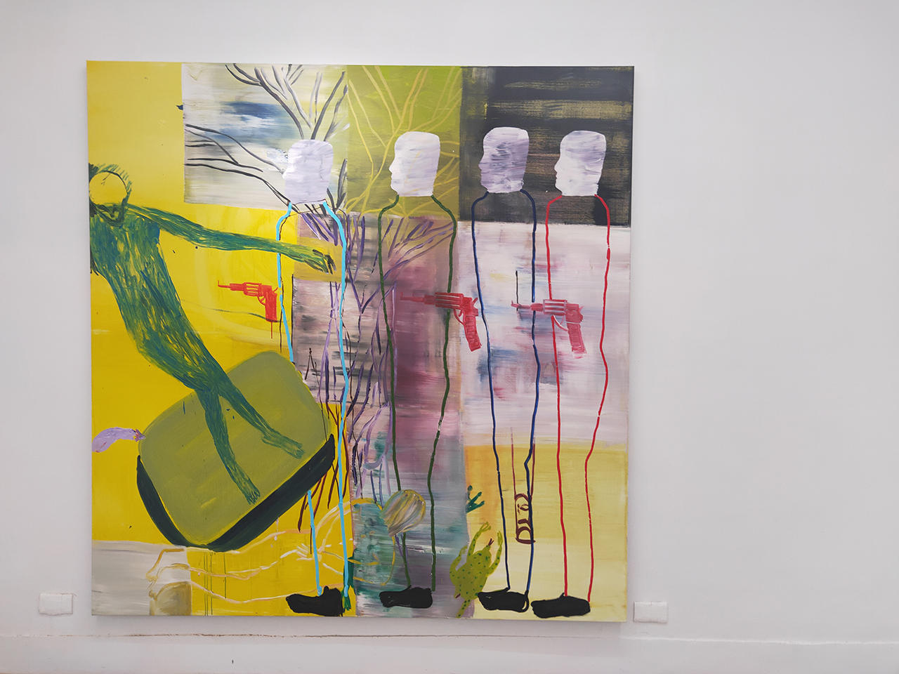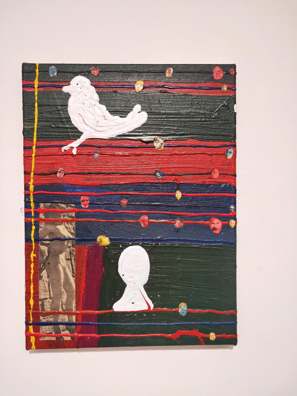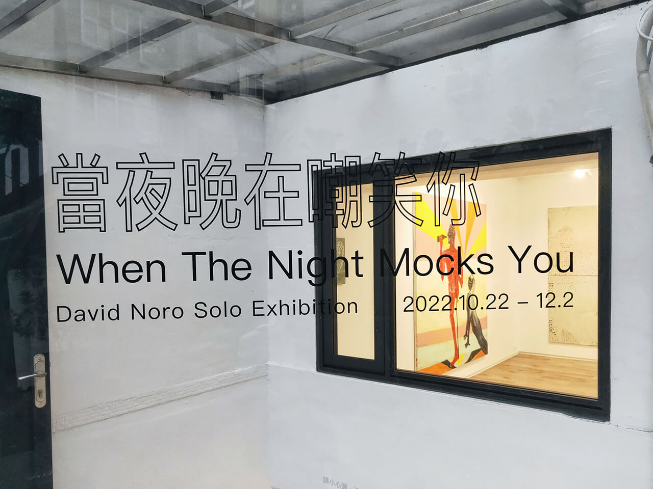 《當夜晚在嘲笑你》是丹麥藝術家 David Noro 的畫展,畫作的風格強烈、鮮明且充滿獨特性,第一眼看到畫作時,就覺得是實驗性相當強的作品,現場仔細看也會發現畫布撕裂、顏料堆疊、拼貼或塗抹覆蓋的細節。
