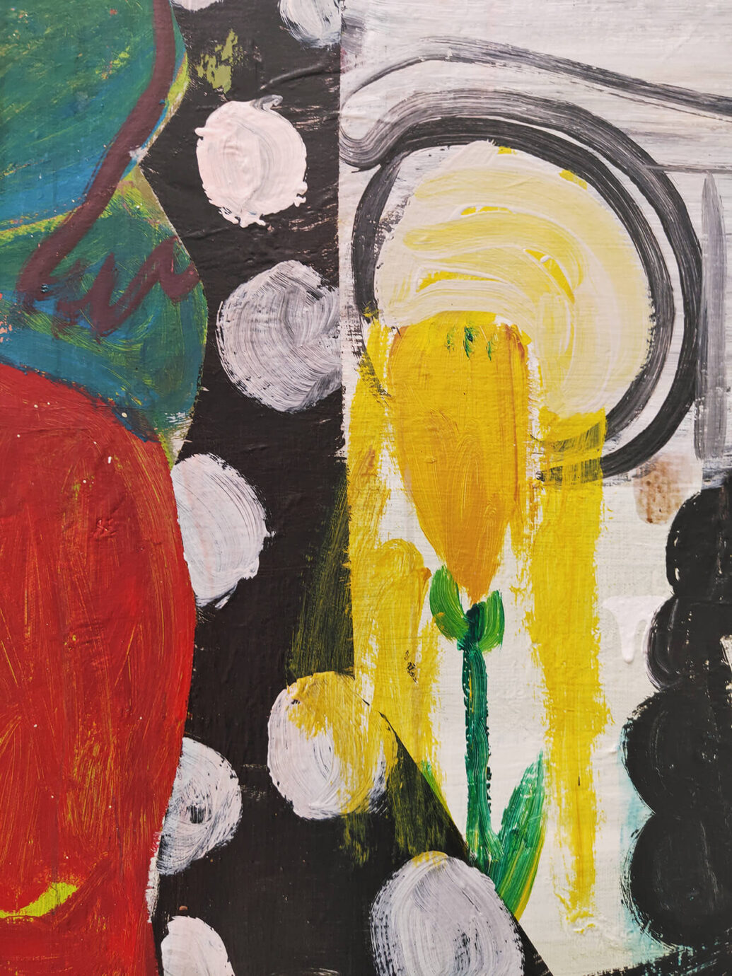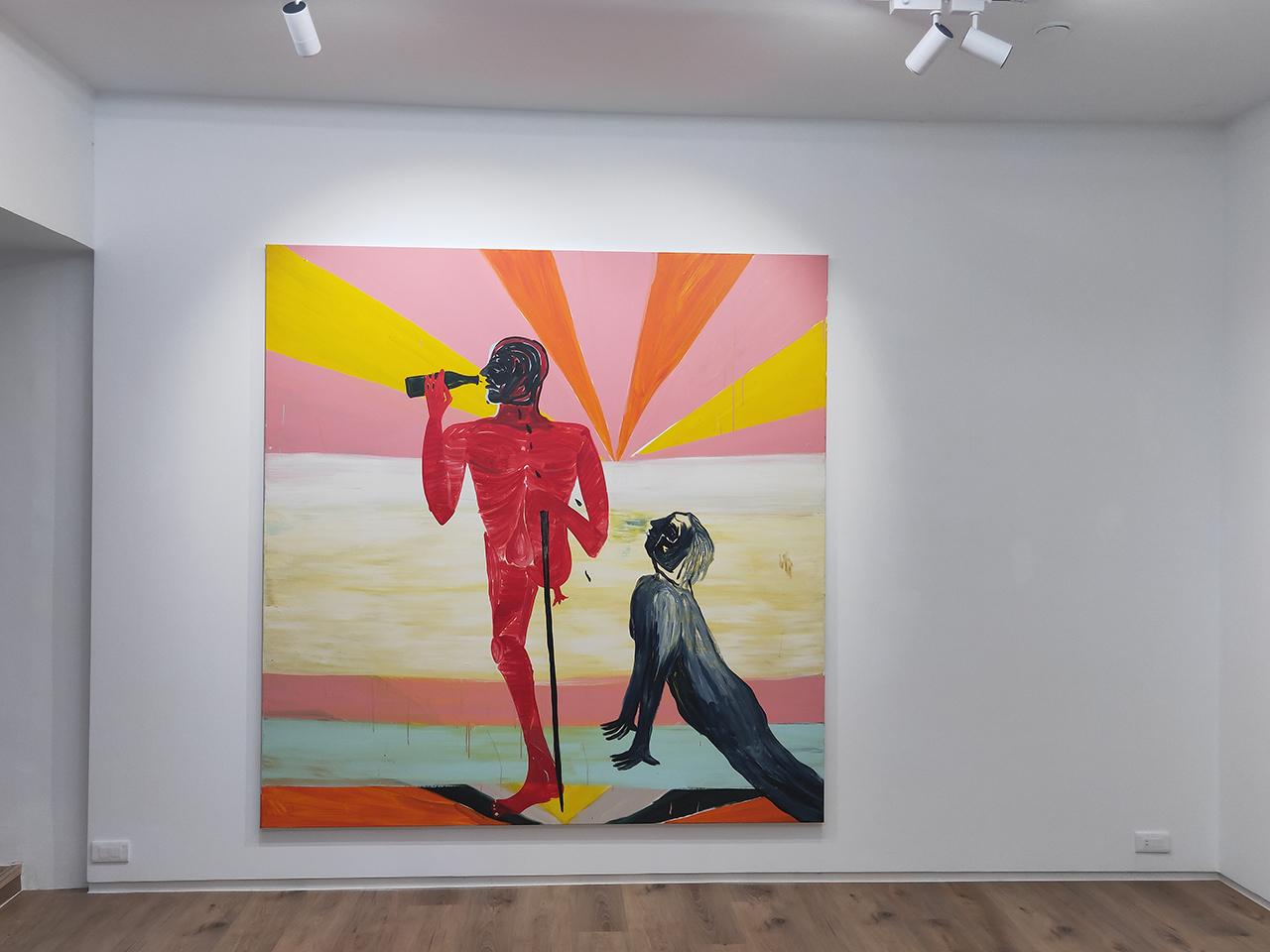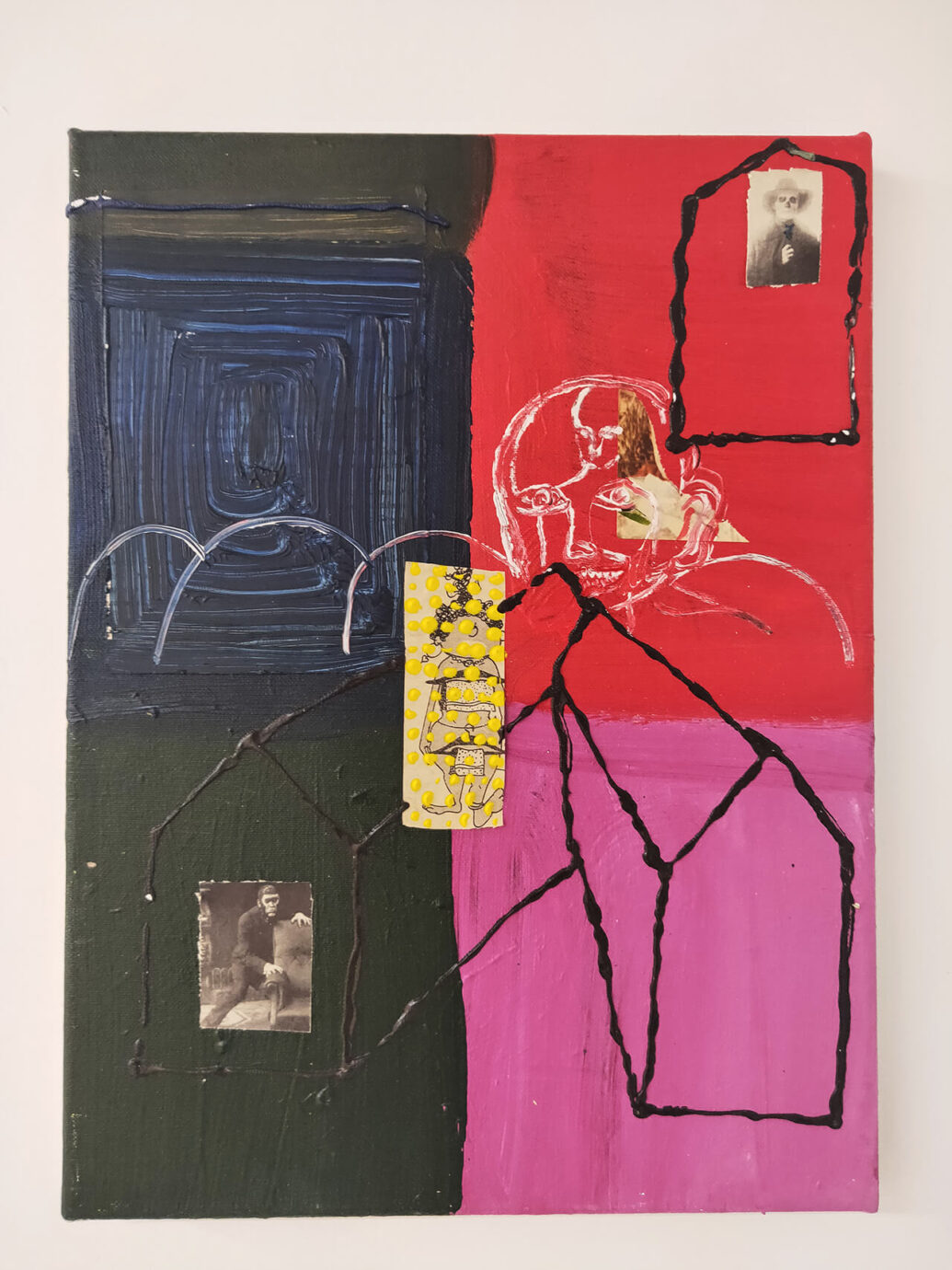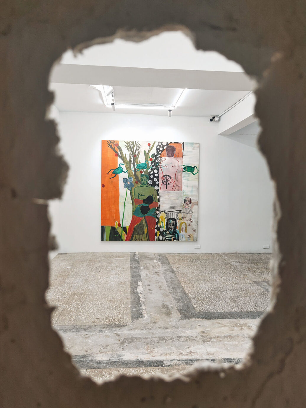 《當夜晚在嘲笑你》是丹麥藝術家 David Noro 的畫展,畫作的風格強烈、鮮明且充滿獨特性,第一眼看到畫作時,就覺得是實驗性相當強的作品,現場仔細看也會發現畫布撕裂、顏料堆疊、拼貼或塗抹覆蓋的細節。