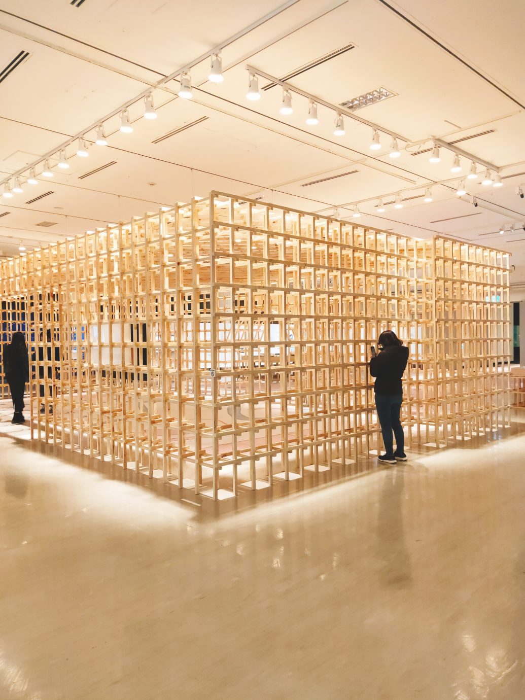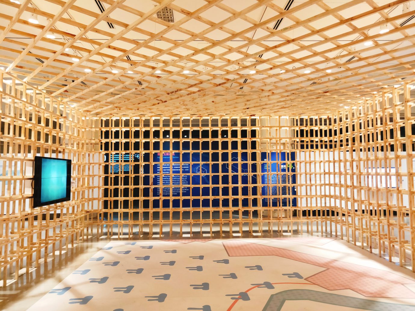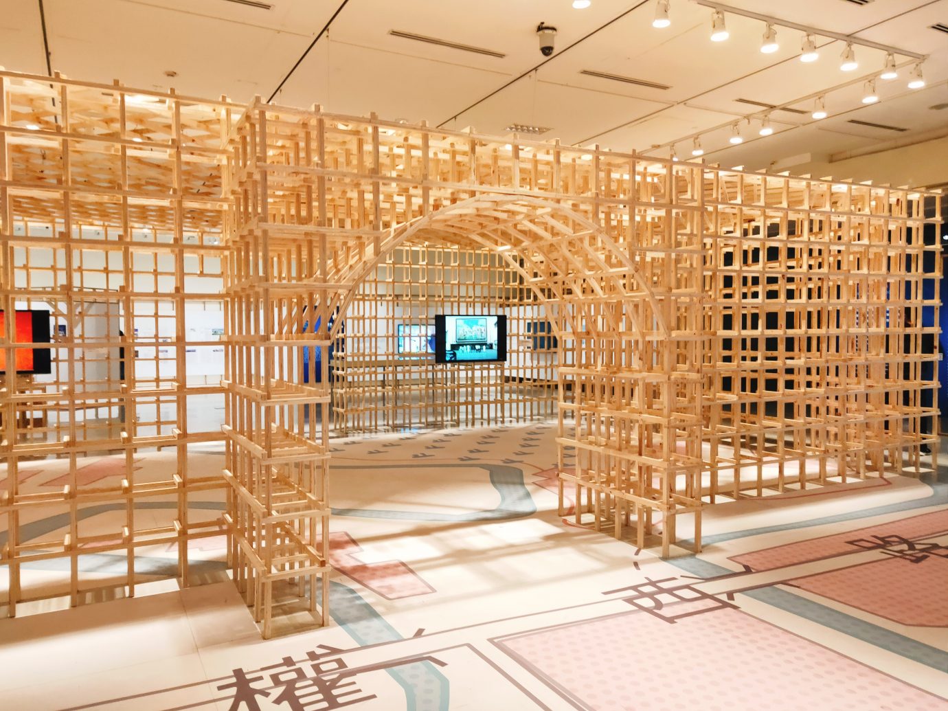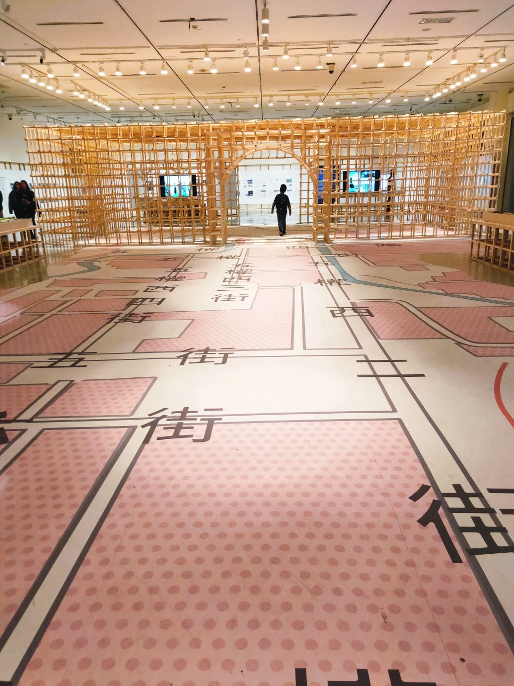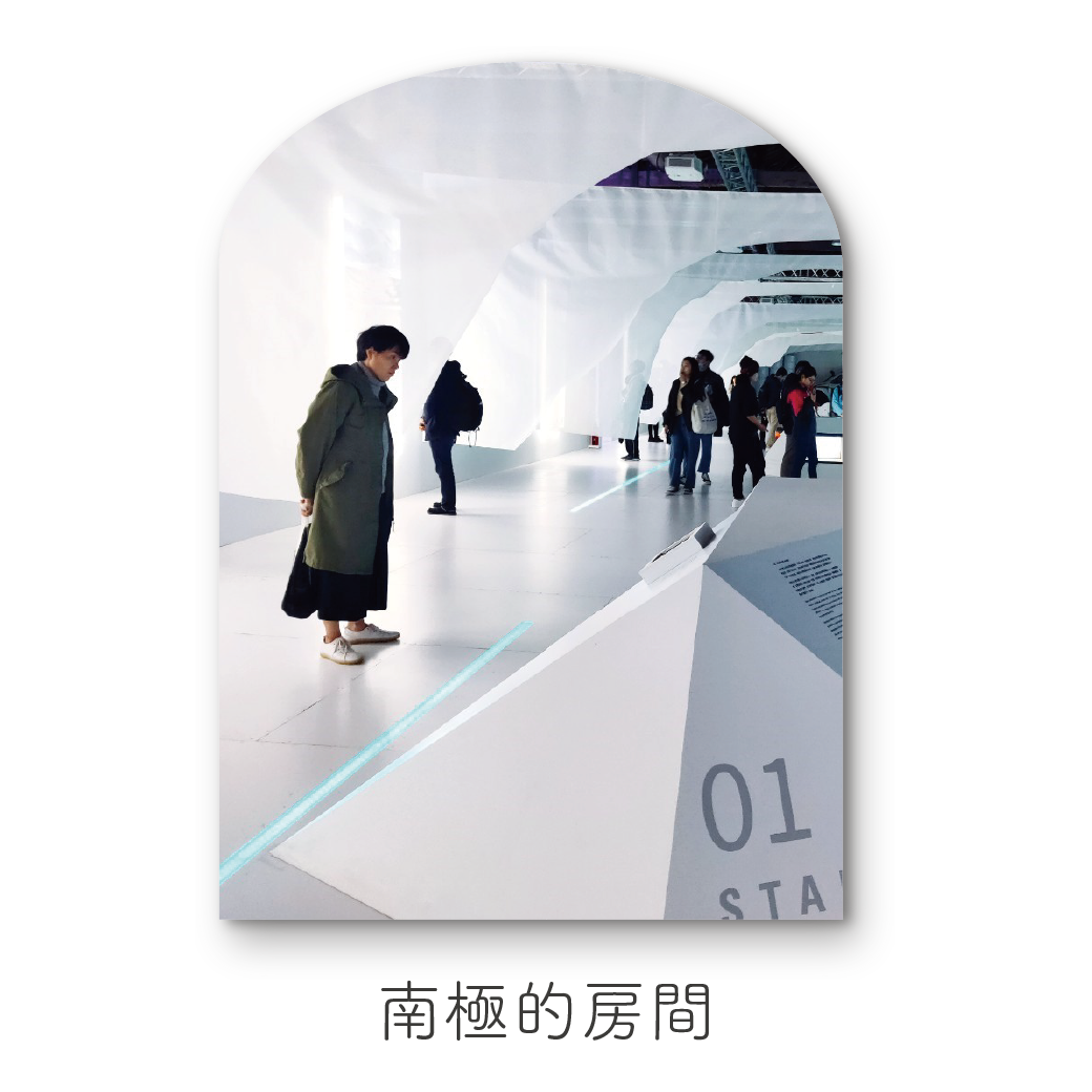 一開始入口的展區設計就很親民!地板上是前往國美館的地圖,而木造的建築結構,則是現在被遮起來的國美館大門,過去為了整體空間的規劃考量,變更了大門的動線,現在的使用入口都是側邊的小門,雖然還是可以看到原本的大門,但已經被遮起來不使用了。