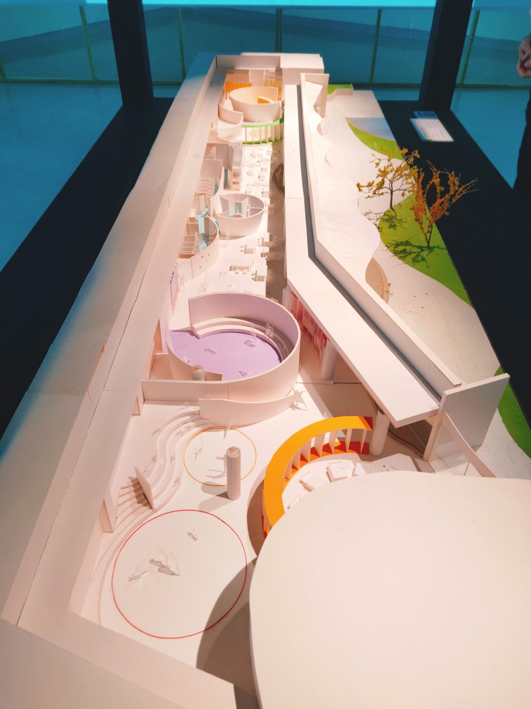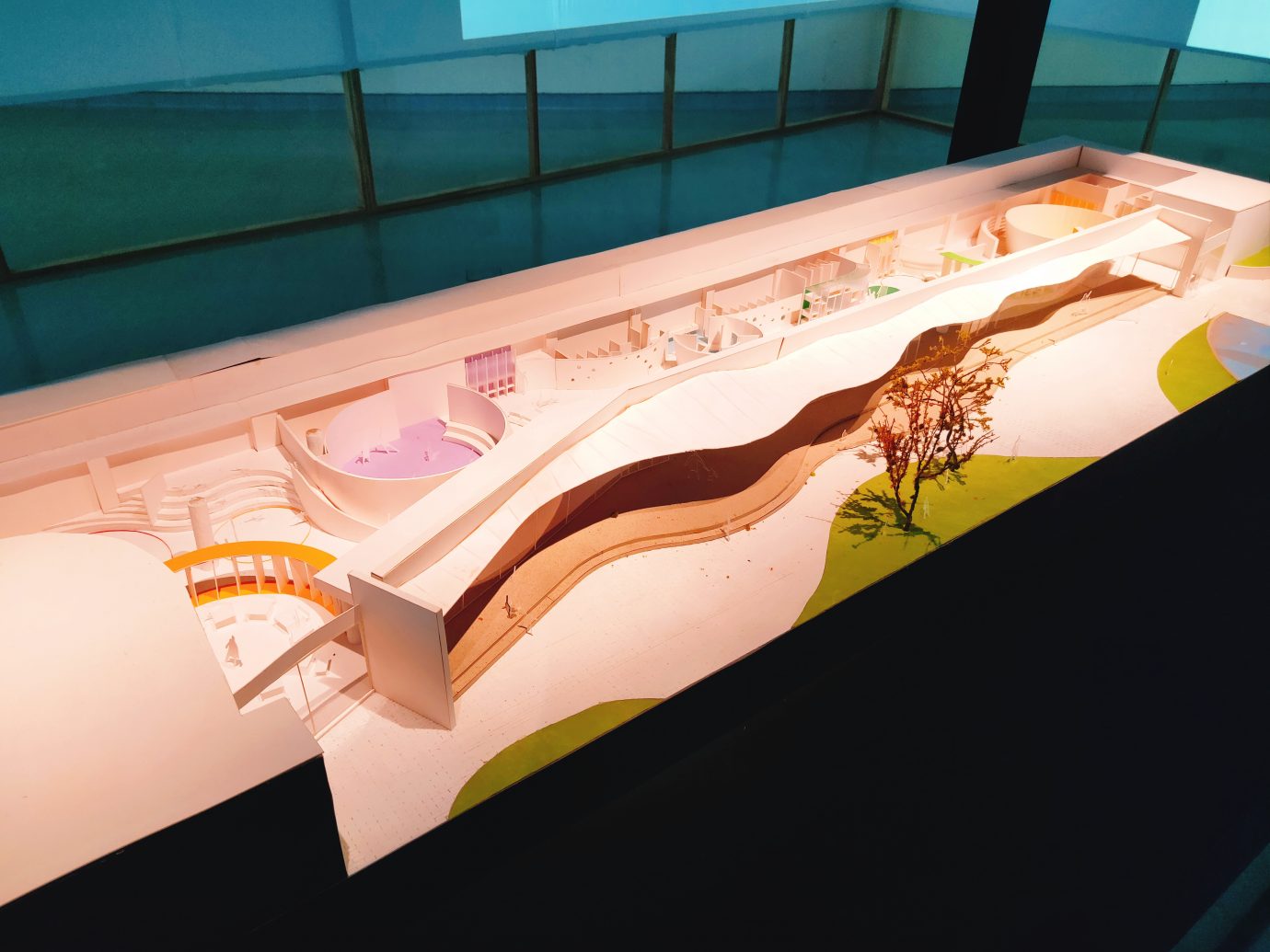 除了回顧國美館過去及現在的樣貌,最重要的還有未來的空間規劃!展覽中也可以看到之後兒童教育空間的建築模型,設計的概念是依顏色去劃分不同的區域,曲面的設計跟半開放式的空間設計,都讓人覺得空間很活潑!