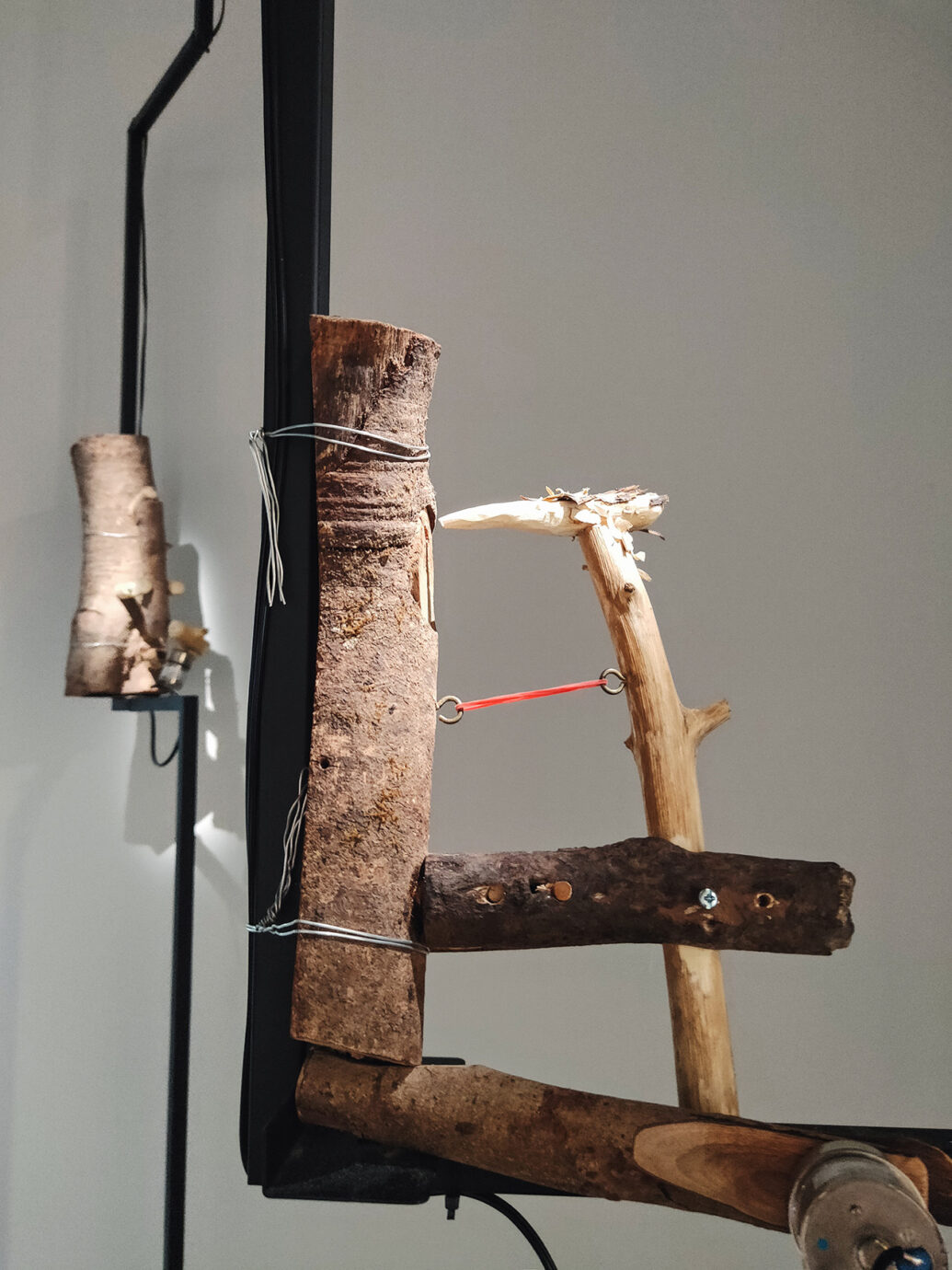 如果不常看錄像的房客,來到展間推薦大家一定一定要花時間坐下來看完錄像,因為錄像到了最後,會隨著空間的木製啄木鳥裝置一起共鳴,開始敲打展間內的木頭,此起彼落的聲音,彷彿隨著錄像中的啄木鳥靈魂一起回到了山林,聽見林間聲音的迴盪。