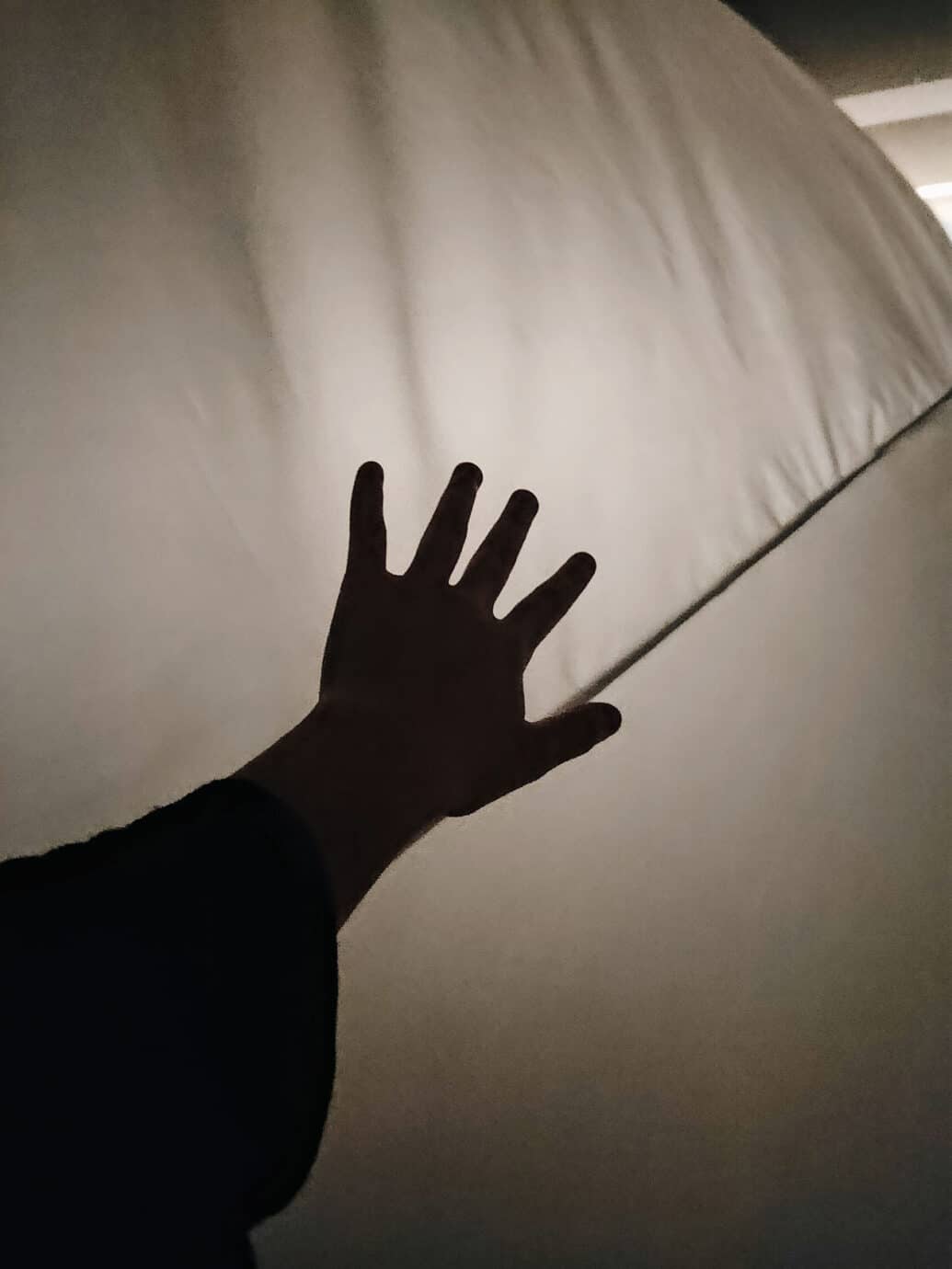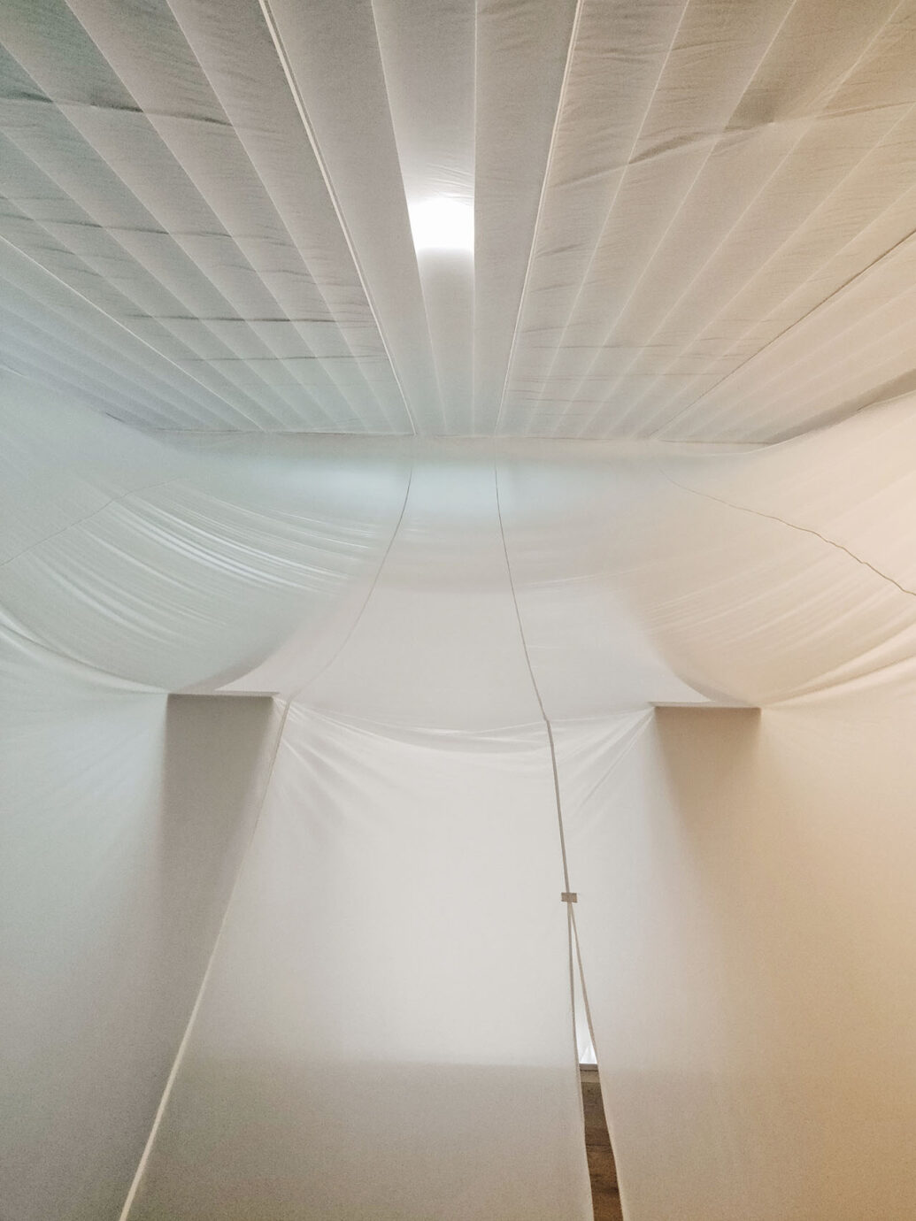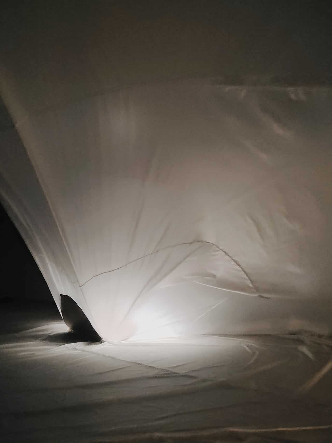 我看著朋友用雙臂輕輕拍打著透明的薄膜,隨著它緩緩下墜再升起,
