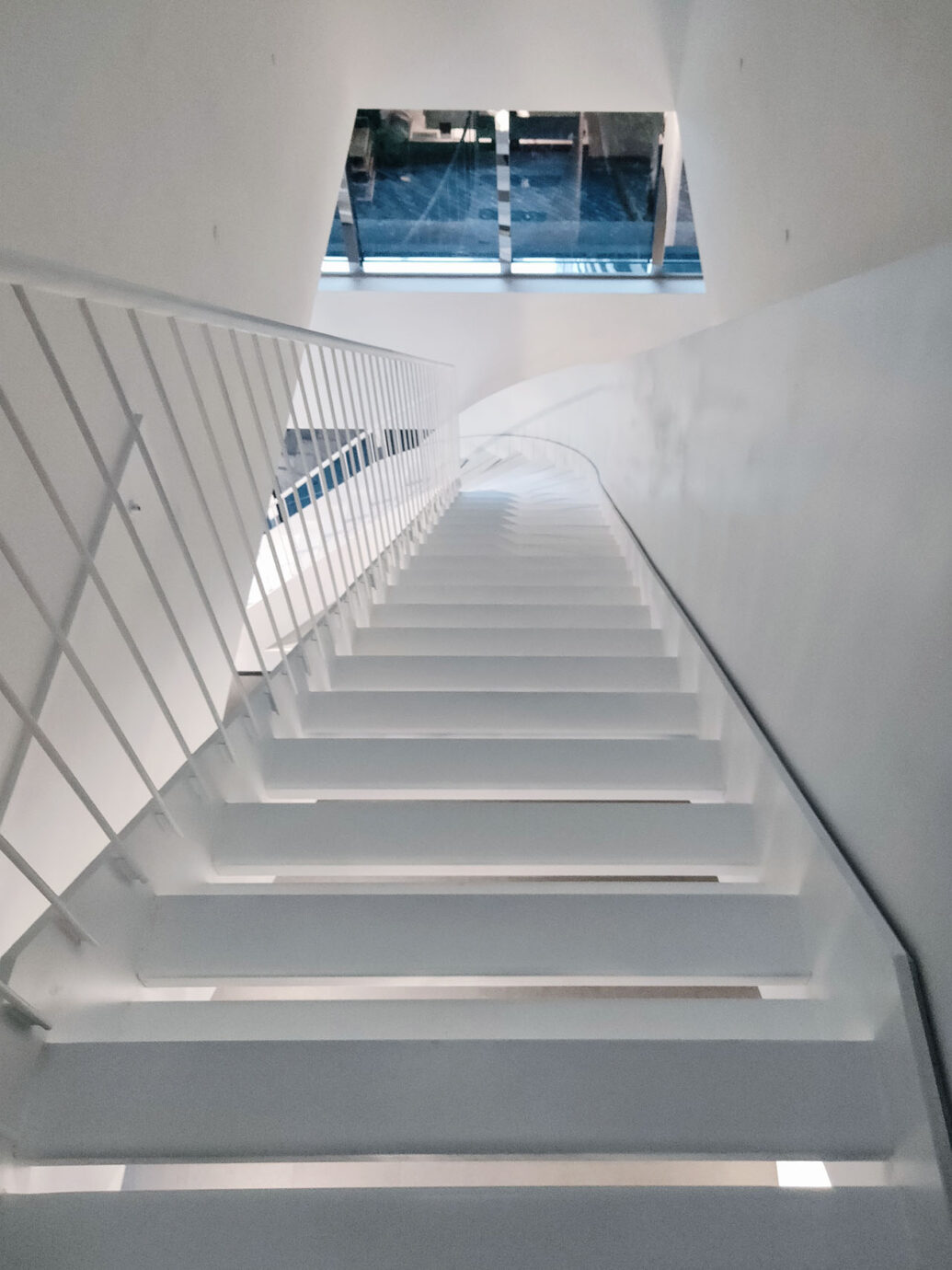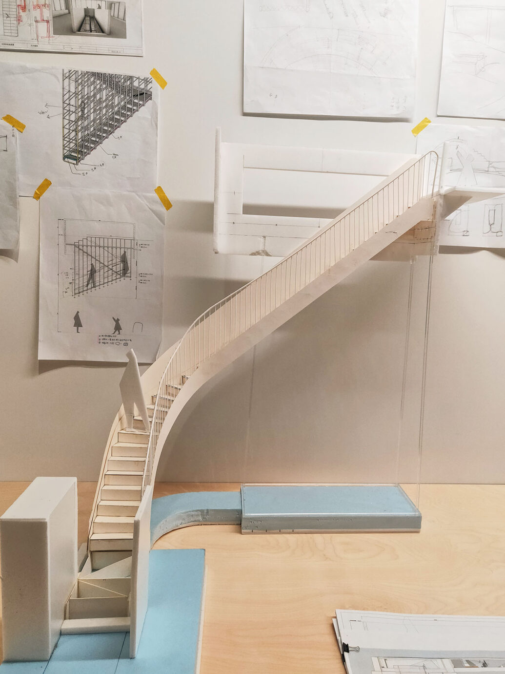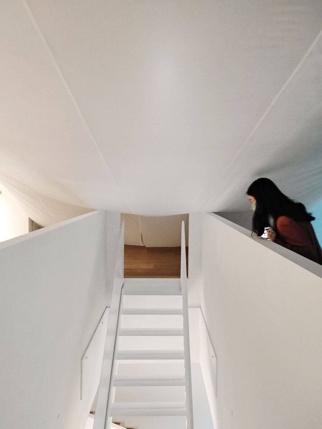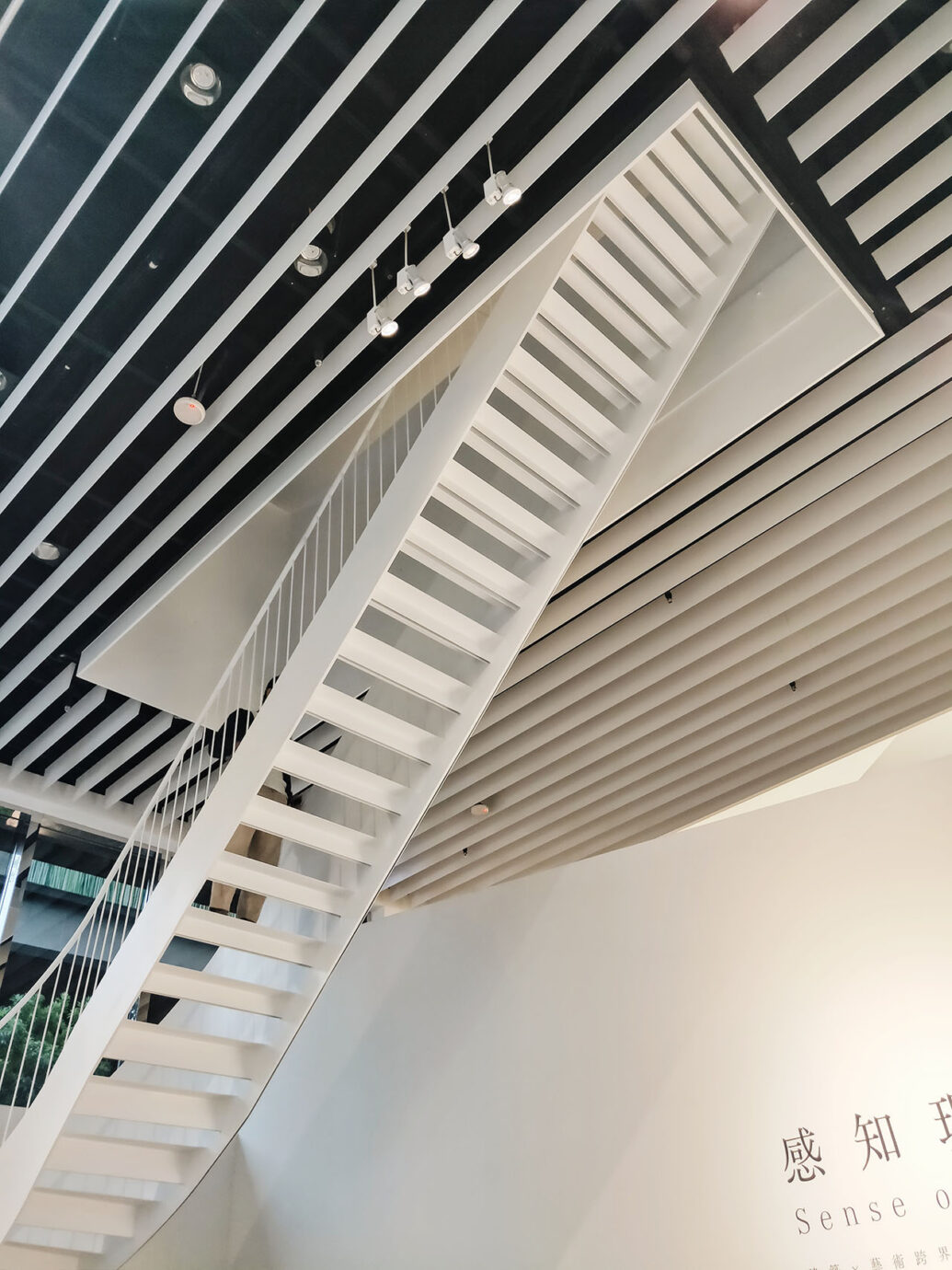 然而這次在走進展覽前,館方就打碎了觀眾習以為常的身體經驗,展覽直接改變了大家所熟悉的動線,在美術館裡創造了另一個階梯,並以此作為走進作品的入口,而原本熟悉的動線則成為了離開的出口。