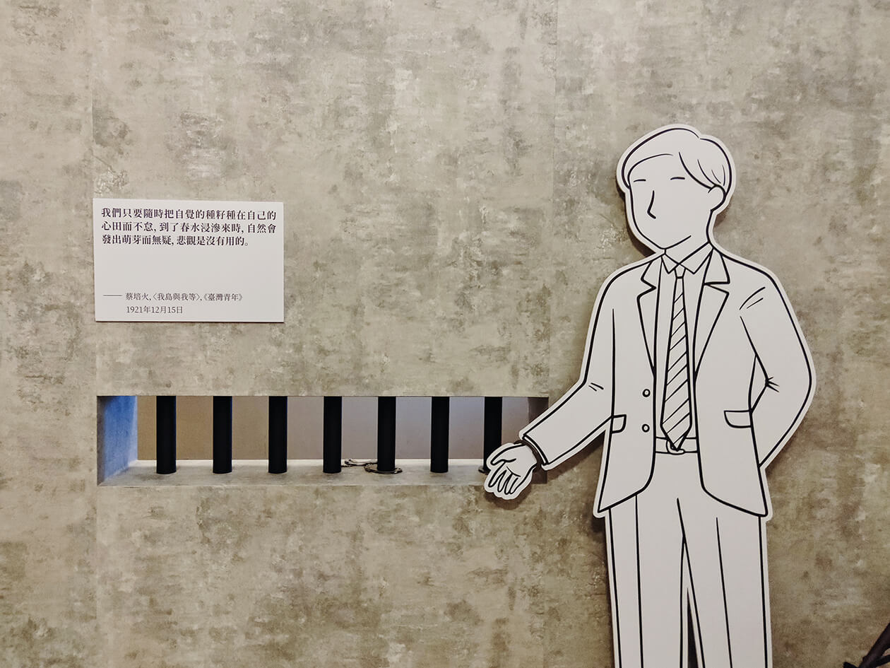 若你是第一次來展館的人,看完特展後,也可以到一樓看看常設展,常設展的內容就是更深入的去述說台灣青年創辦文協(台灣文化協會)的歷史,而紀念館本身也曾是日治時期的警署,仍保留著當時牢房、監視台的樣貌,從建築到特展,都是台灣青年曾留下的歷史足跡。