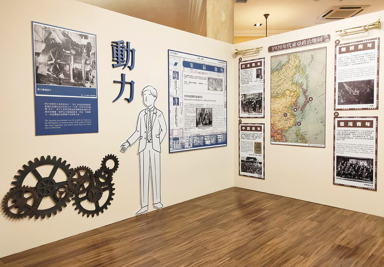 說到青年,當然也少不了「教育」!展區以「青年製造」的概念,來呈現青年教育的思潮,談國語學校及醫學校的背景,展示學習講義及教育的環境,最後還有8位對青年很有影響力的人物!日治時期的台灣青年,也可以說是「覺青」的始祖,在受壓迫及統治的情況下,青年逐漸有了本土意識,而知識的潮流與現代的刊物,對當時的青年思想都帶來了很大的衝擊。