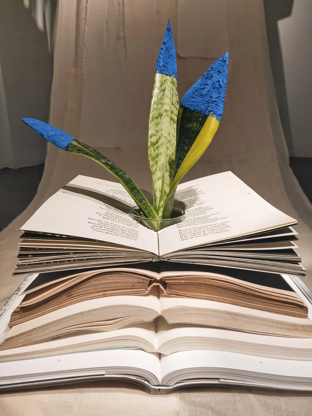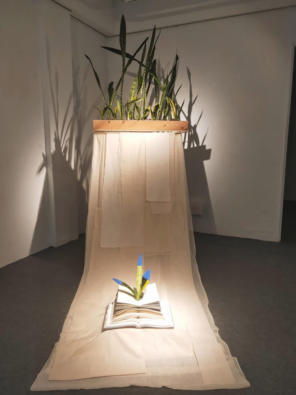 展覽以不同文化下的虎尾蘭及書籍為起始,串起2個文化之間的故事,相像卻又相異的植物雜揉著不同的土地與文化,做為一種象徵,穿梭在展場的作品之間。以神話故事為背景、自然物為串連,牽連起不同文化之間的交流與交換。