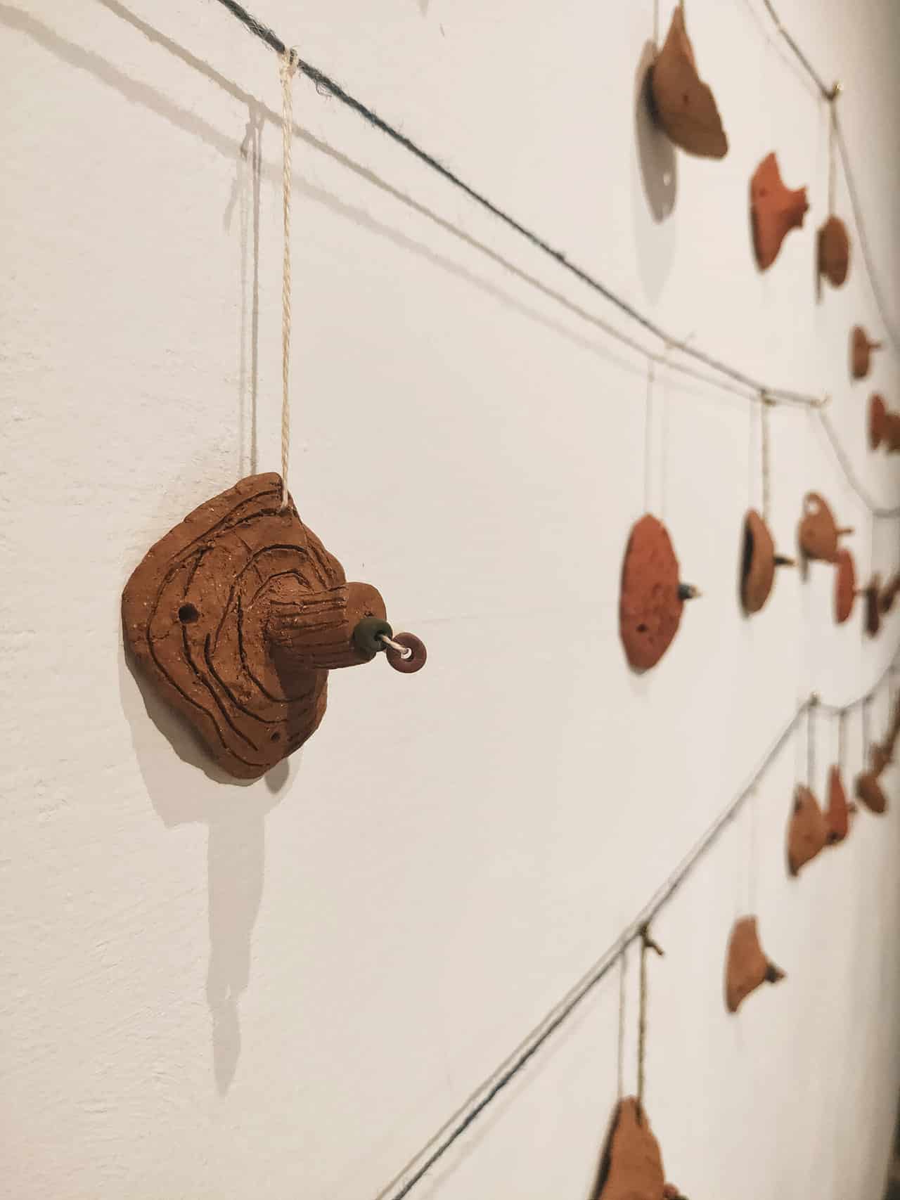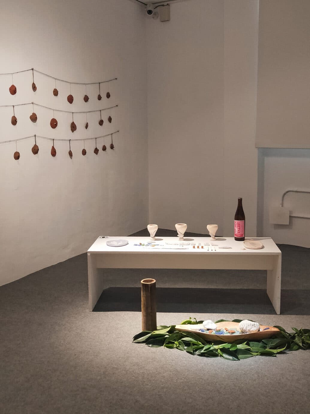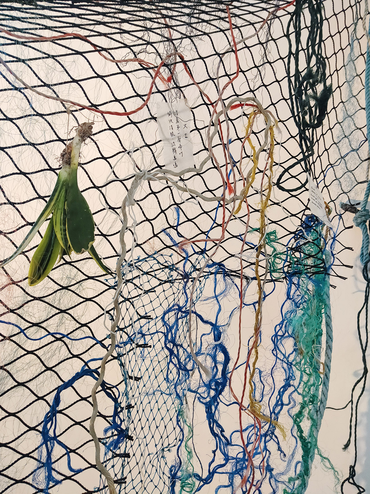 土地的故事總與自然相伴,在展場裡,藝術家們的作品與表達也多取之於自然,取之山林的植物虎尾蘭、取之海的漁網以及取之土壤的陶作,取自山海的作品,似乎也像是另一種藝術家對於土地的呢喃。