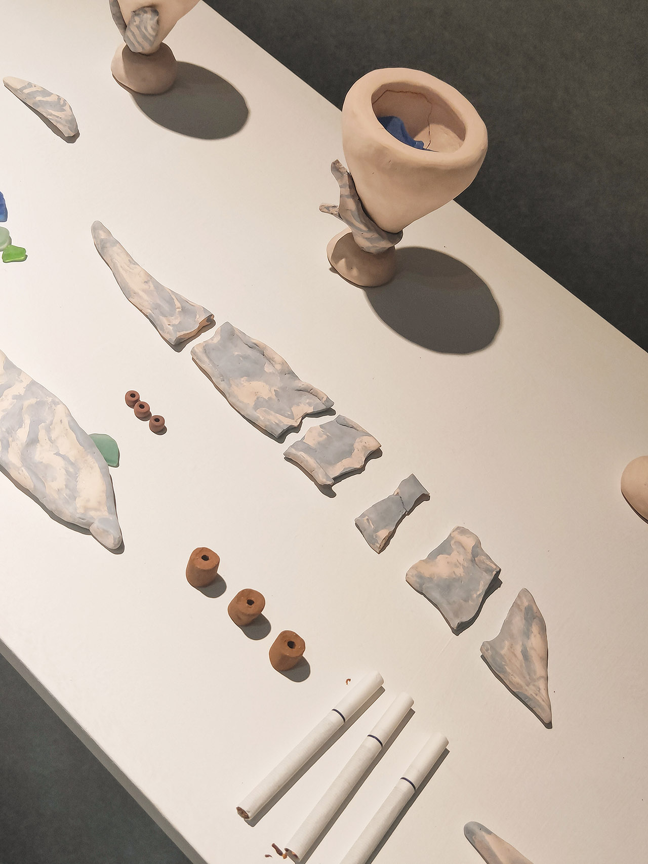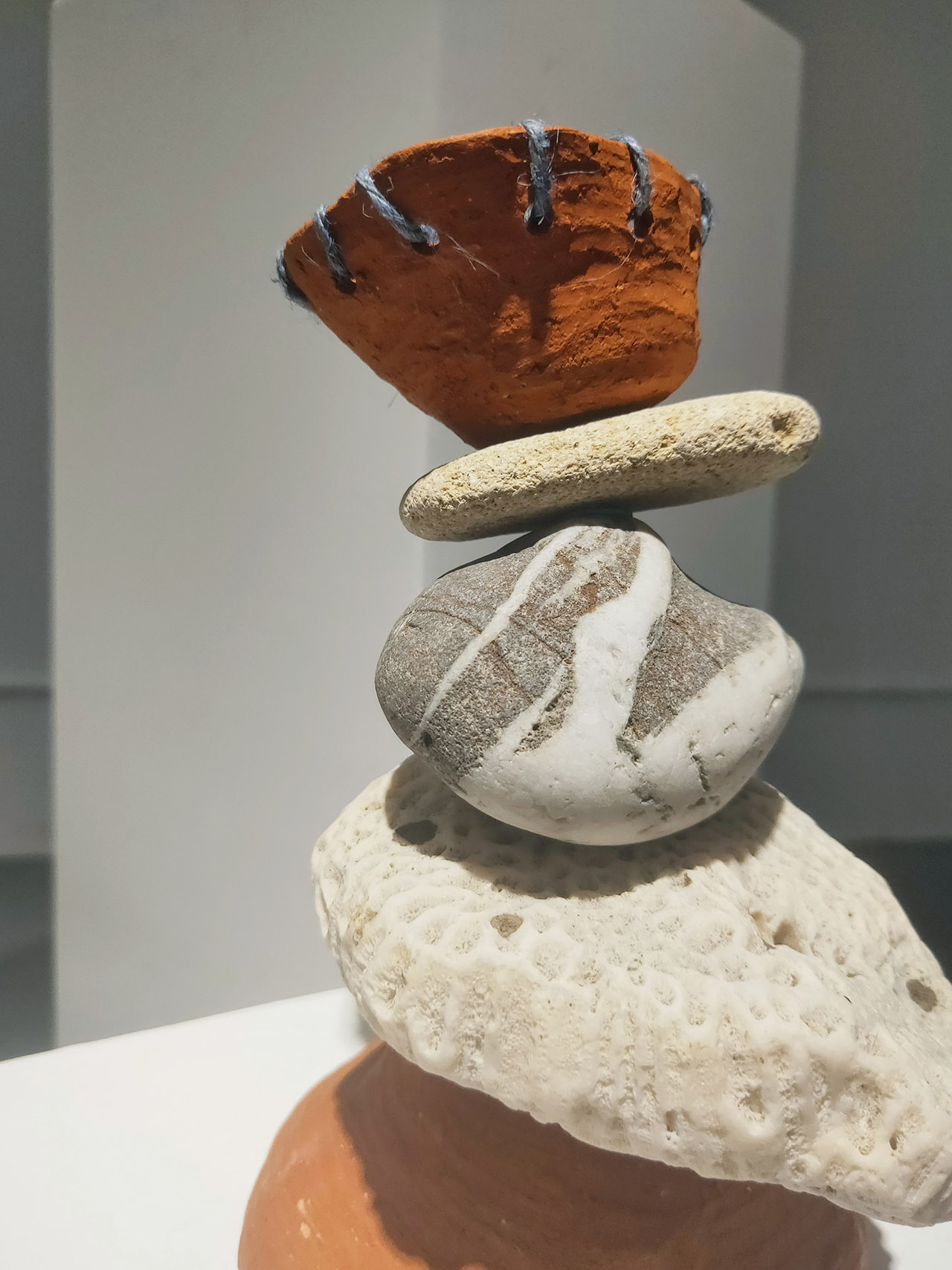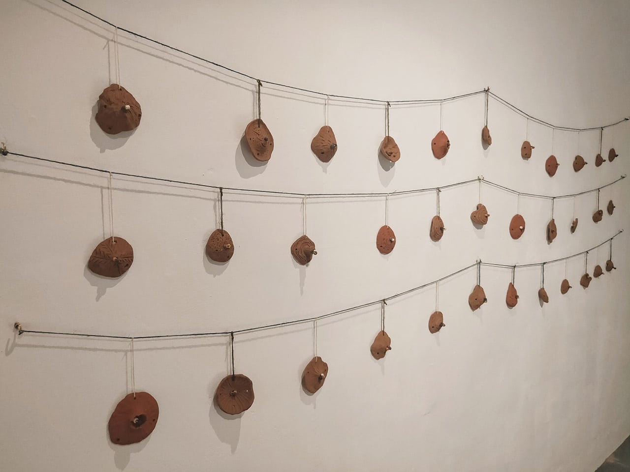 土地的故事總與自然相伴,在展場裡,藝術家們的作品與表達也多取之於自然,取之山林的植物虎尾蘭、取之海的漁網以及取之土壤的陶作,取自山海的作品,似乎也像是另一種藝術家對於土地的呢喃。