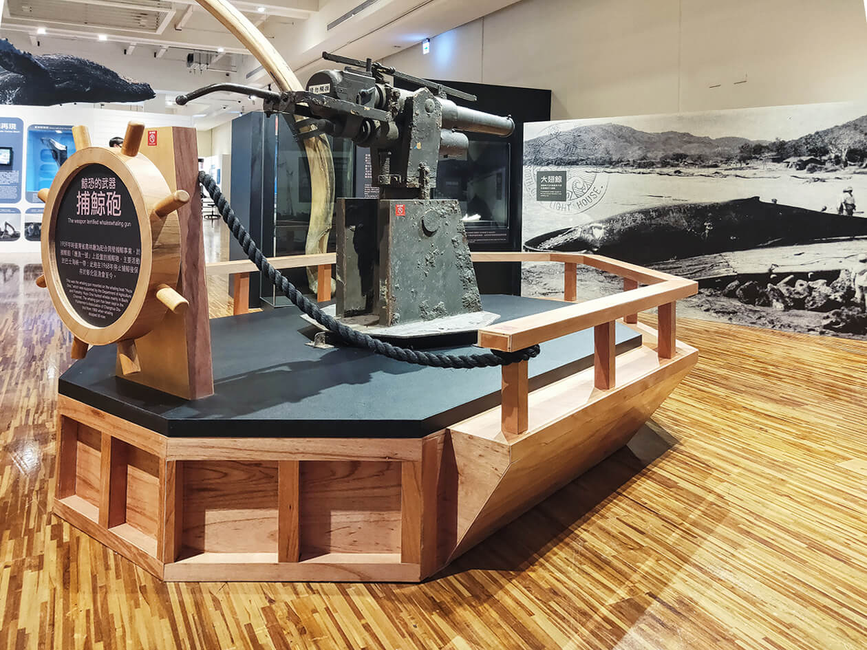 這次《鯨豚解密展》的展場雖然不大,不過仍清楚的以時間軸的方式,帶領觀眾走過各階段的鯨豚歷史,展場先從大型的捕鯨砲,揭示了台灣商業獵捕鯨豚的時代,當時總共捕了1800隻以上的鯨豚(好多!)